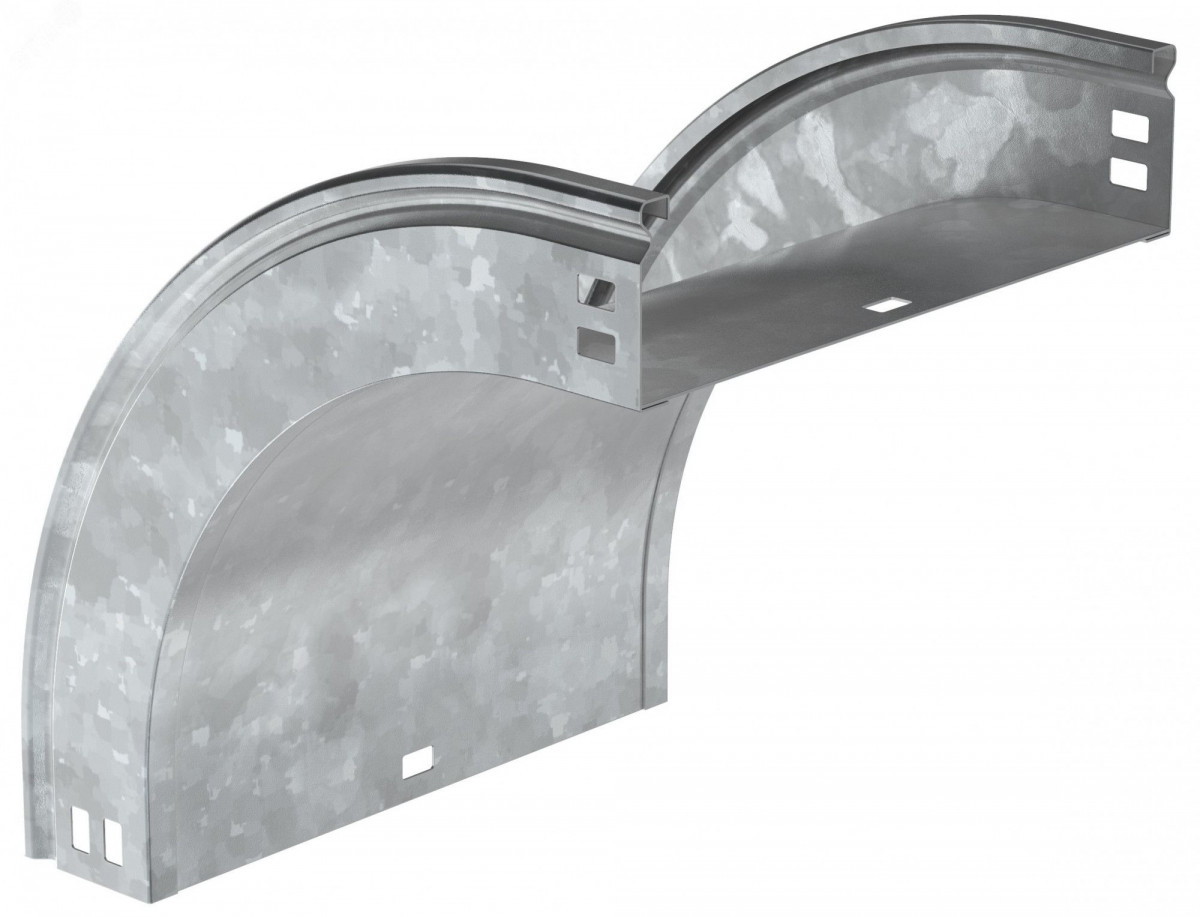 Поворот на 90 градусов вертикальный внешний плавный предназначен для организации вертикального внешнего поворота кабельной трассы на 90 градусов. Крышка аксессуара в комплект не входит.Аксессуар изготовлен из стали с цинковым покрытием, нанесенным погружением изделий в расплав цинка (защитный слой цинка не менее 55 мкм).