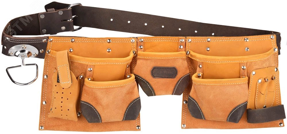 Пояс для инструментов, натуральная кожа, 9 карманов