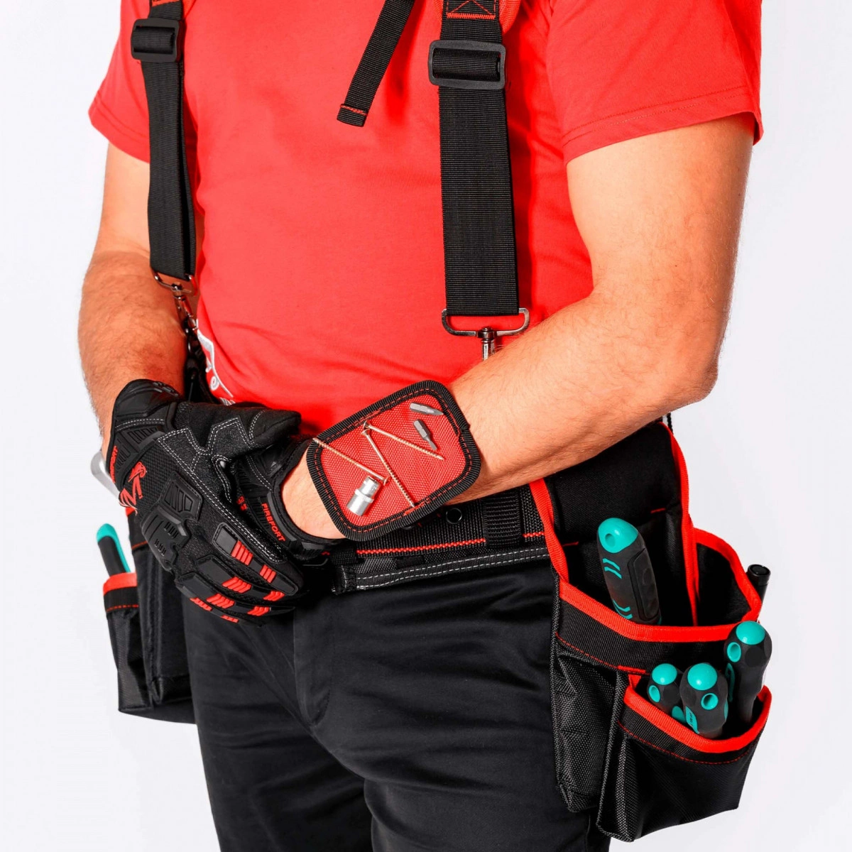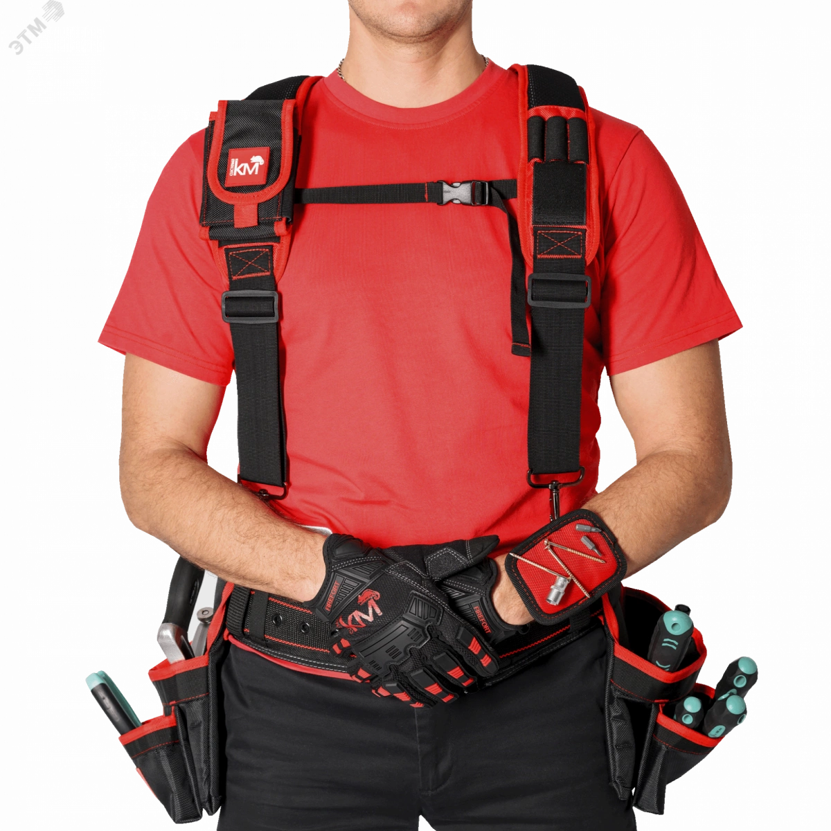 Полное описание: Пояс монтажный усиленный с подсумками, разгрузочными ремнями и магнитным держателем KM-BELTBAGSET-23