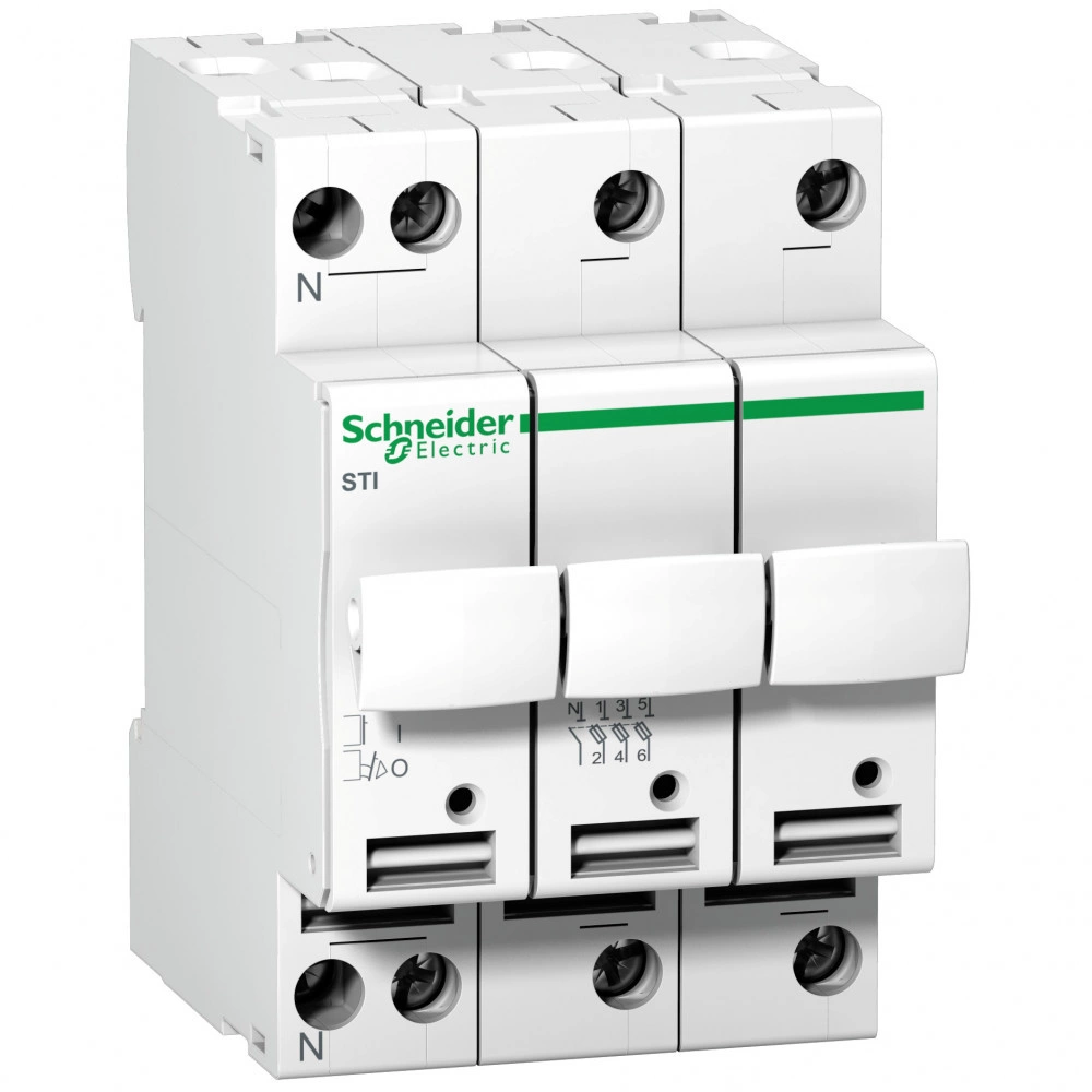 Разделитель предохранитель STI 3П+Н 10,3X38 400В. Комбинированные pазъединители-пpедохpанители STI обеспечивают защиту от перегрузок и коротких замыканий. Держатели плавких вставок обеспечивают видимый разрыв при эксплуатации электроустановки. Применяются на промышленных и административно-ко ммерческих объектах, где требуется высокая отключающая способность аппаратов защиты. Выполняют функции разъединительинителя, но не могут использоваться в качестве выключателя нагрузки.