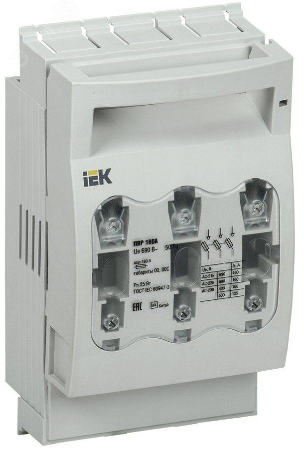 Предохранители-выключатели-разъединители (ПВР) предназначены для неавтоматической коммутации и защиты от сверхтока цепей переменного тока номинальным напряжением до 690 В и номинальной частоты 50 Гц. Используются для установки в низковольтные комплектные устройства. Преимущества - Компактная и прочная конструкция. Корпус, не поддерживающий горение. Возможность коммутации под нагрузкой, благодаря встроенным дугогасительным камерам. Возможность присоединения медных и алюминиевых проводников. Возможность установки дополнительного контакта, для контроля положения крышки. Съемная крышка, обеспечивающая легкий монтаж предохранителей.