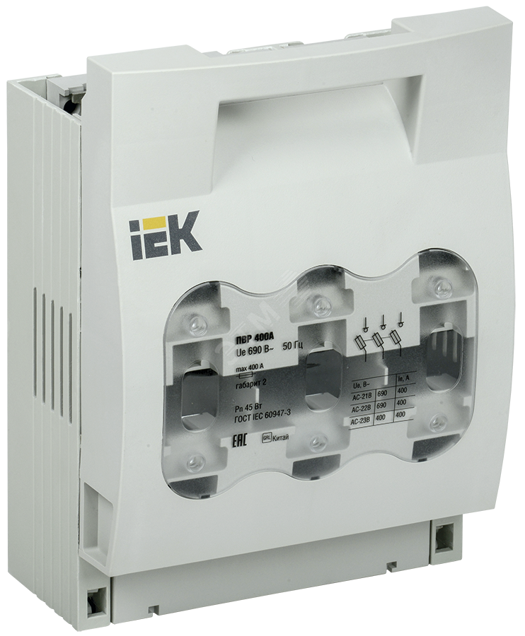 Предохранители-выключатели-разъединители (ПВР) предназначены для неавтоматической коммутации и защиты от сверхтока цепей переменного тока номинальным напряжением до 690 В и номинальной частоты 50 Гц. Используются для установки в низковольтные комплектные устройства. Преимущества - Компактная и прочная конструкция. Корпус, не поддерживающий горение. Возможность коммутации под нагрузкой, благодаря встроенным дугогасительным камерам. Возможность присоединения медных и алюминиевых проводников. Возможность установки дополнительного контакта, для контроля положения крышки. Съемная крышка, обеспечивающая легкий монтаж предохранителей.