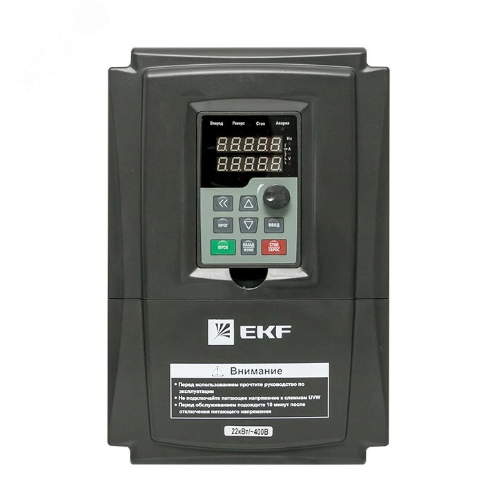 Общепромышленные преобразователи частоты EKF PROxima предназначены для управления скоростью вращения электродвигателей, применяемых в широком спектре промышленного оборудования. Обеспечивают точное поддержание скорости вращения двигателя в зависимости от внешних факторов. Обеспечивают снижение потребления электроэнергии на 30 и более %. Преимущества - Пусковой момент - 150% при 0.5 Hz обеспечивает точное поддержание момента на всех скоростях электродвигателя. Встроенный интерфейс RS-485 с поддержкой протокола Modbus-RTU позволяет встраивать преобразователь в распределененные системы управления. Перегрузки до 150% в течение 60 сек гарантирует работу электродвигателя при перегрузках на валу. Выносной дисплей. Мощность до 75 кВт позволяют применять преобразователи в широком спектер проектов.