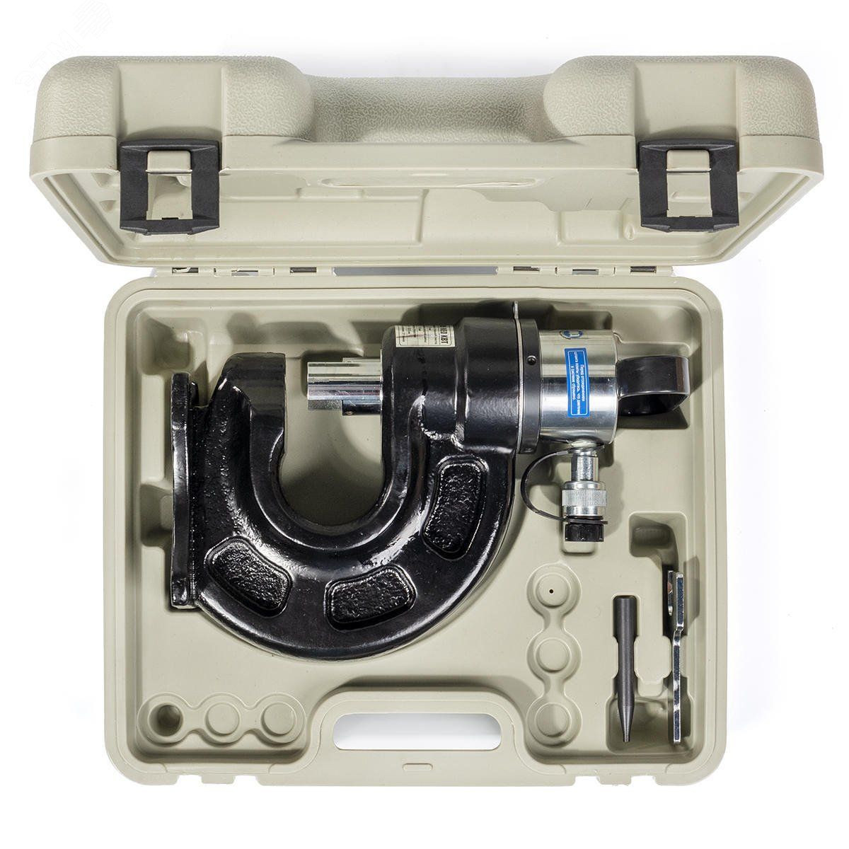 Пресс оборудован лазерным указателем для легкой и точной центровки шины при пробивке. Не требует предварительного высверливания центровочного отверстия. Возможность стационарного крепления пресса к рабочему столу. Вес инструмента - 16.60 кг. Упаковка - прочный пластиковый кейс. Габариты упаковки - 430х160x365 мм. Совместимость - любые гидравлические насосы 'КВТ' с объемом рабочей жидкости не менее 0.60 л.