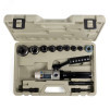 В комплекте - прочный пластиковый кейс. Диаметры перфоформ в комплекте (мм - 16.2/18.6/20.5/22.5/25.4/28.3/37.0/47.0. Перфоформа представляет пару 'матрица – пуансон', круглые перфоформы МПО (КВТ до 28.3 мм включительно, имеют специальную конструкцию. Они разрезают кольцевой отход на две части во избежание застревания высечки внутри перфоформы. Толщина пробивки листового металла - сталь St 37 до 3 мм. Нержавеющая сталь до 1.5 мм. Максимальное усилие - 5 т. Вес комплекта/инструмента - 4.00/1.80 кг. Габариты кейса - 450х300х95 мм