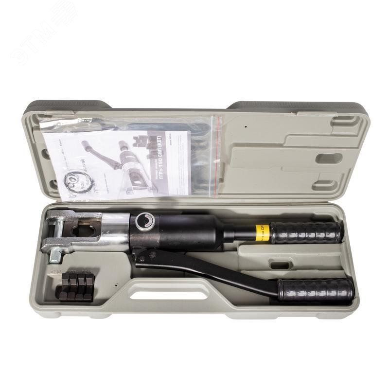 В комплекте - пресс ПГРс-150 СИП, набор из 3 матриц - Е140, Е173, Е215, ремкомплект (уплотнительные кольца), прочный пластиковый кейс. Механизм автоматического сброса давления (АСД). Клапан ручного сброса давления. Двухскоростная помпа с механизмом быстрого хода поршня. Максимальное усилие - 12 т. Легкая, удобная и компактная модель. Вес комплекта/инструмента - 5.30/3.90 кг. Длина - 470 мм. Габариты кейса - 490х185х90 мм
