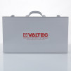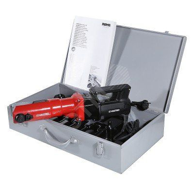 Универсальный электрический пресс-инструмент VALTEC Power-Press SЕ предназначен для обжатия фитингов при монтаже металлополимерных, пластиковых, металлических труб диаметром от 10 до 108 мм. Пресс-инструмент оснащен электромеханическим приводом с мощным (450 Вт) двигателем, усилие которого увеличивается редуктором до нескольких тонн. Компактен, имеет небольшой вес и поставляется в удобном металлическом кейсе, редуктор не требует ежегодного технического обслуживания, есть защита от перегрузки, произведен в Германии . Насадки в комплект не входят, а приобретаются отдельно для каждого профиля и диаметра соединяемого трубопровода.