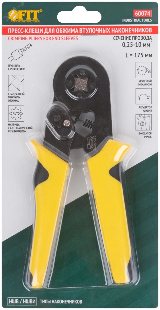 Пресс-клещи для обжима втулочных наконечников 0,25-10 мм, прорезиненные ручки 175 мм
