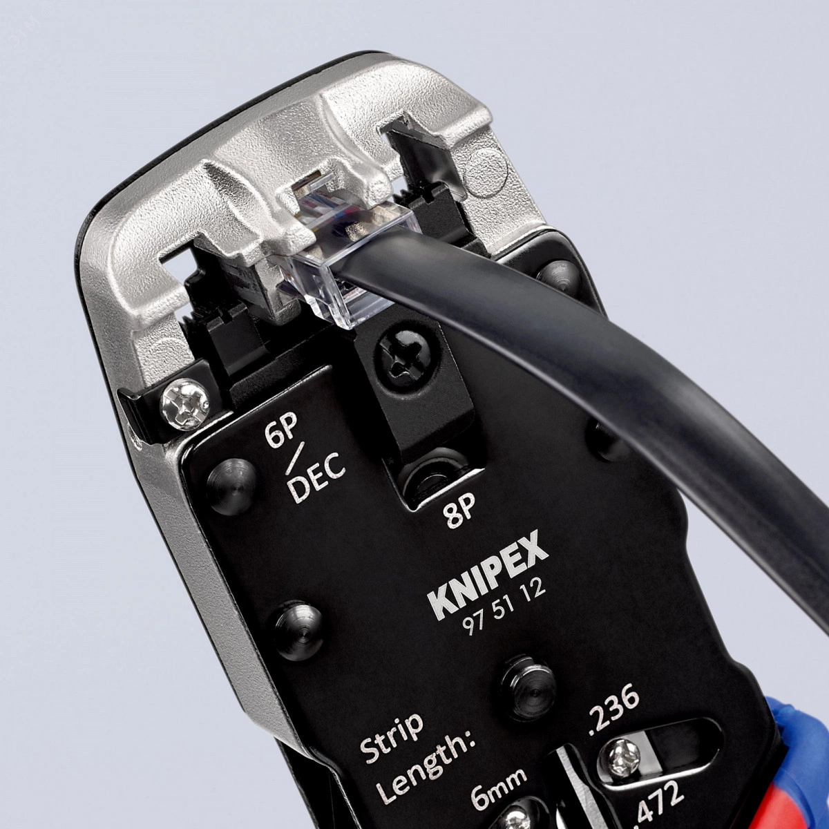 Инструмент для опрессовки штекеров типа Western улучшенный механизм открытия,оптимизированная конструкция, уменьшенный вес. Могут использоваться для обжима 4-, 6-, и 8-контактных RJ разъёмов. Для реза и зачистки плоских, неэкранированных телефонных кабелей. Точность процесса обеспечивается параллельным обжимом. неизменно высокое качество опрессовки за счет принудительной блокировки (с отпиранием). увеличение усилия резания благодаря рычажной передаче для работы без утомления. Для разъёмов типа RJ 10 (7,65 мм), RJ 11/12 (9,65 мм) и RJ 45 (11,68 мм). Лезвие для укорачивания и нож для удаления оболочки с плоского кабеля на длине в 6 и 12 мм. Воронёная голова, двухкомпонентные рукоятки. Дополнительная функция удаления изоляции с круглых кабелей