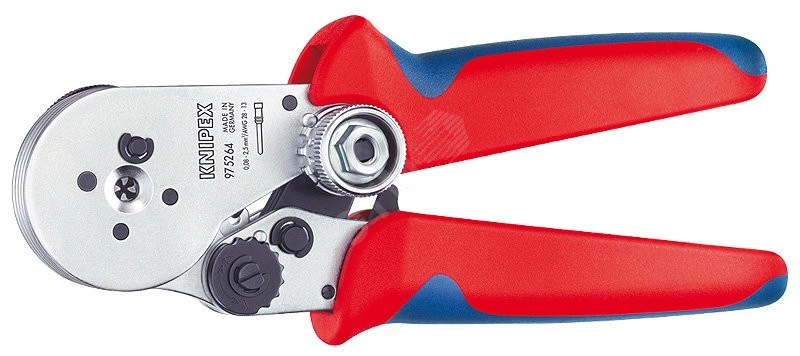 97 52 64 Инструмент для тетрагональной опрессовки точеных контактов для опрессовки точеных контактов. тетрагональная опрессовка для соединений высочайшего качества. калиброванная пробка для контроля основной настройки. неизменно высокое качество опрессовки за счет принудительной блокировки (с отпиранием). увеличение усилия благодаря чрезвычайно эффективному передаточному отношению рычага, что способствует меньшей утомляемости во время работы. высокий комфорт использования инструмента благодаря его удобной конструкции. настройка усилия опрессовки на различные поперечные сечения проводника установочным колесом в 4 позициях. направляющая для установки контактов. - Применение - контакты точеные - Параметры кв.мм - 0,08-2,5mm? - AWG - 28-14 - Количество гнезд - 1 - Диаметр контактов макс. - 5mm