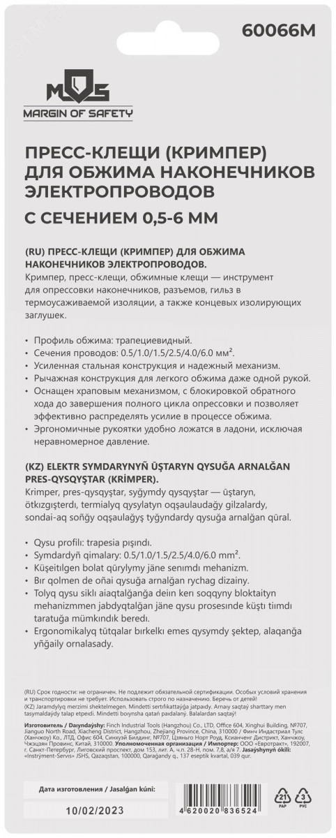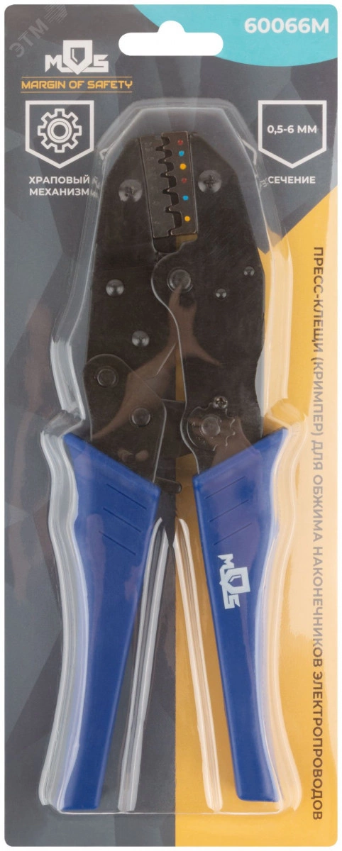 Пресс-клещи (кримпер) для обжима наконечников электропроводов с сечением 0,5-6 мм