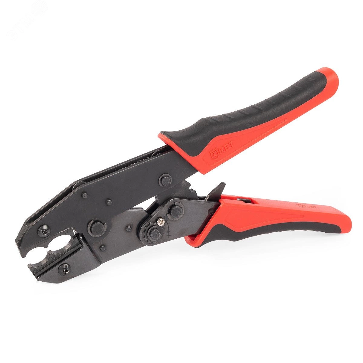 Классическая конструкция, надежная механика. Материал корпуса: качественная 3-миллиметровая сталь. Храповой механизм, обеспечивающий блокировку обратного хода до завершения полного цикла опрессовки. Клещи предназначены для опрессовки изолированных наконечников и гильз с красной и синей манжетами НКИ(н), НВИ(н), НШПИ(н), ГСИ сечением от 10 до 16 миллиметров квадратных.