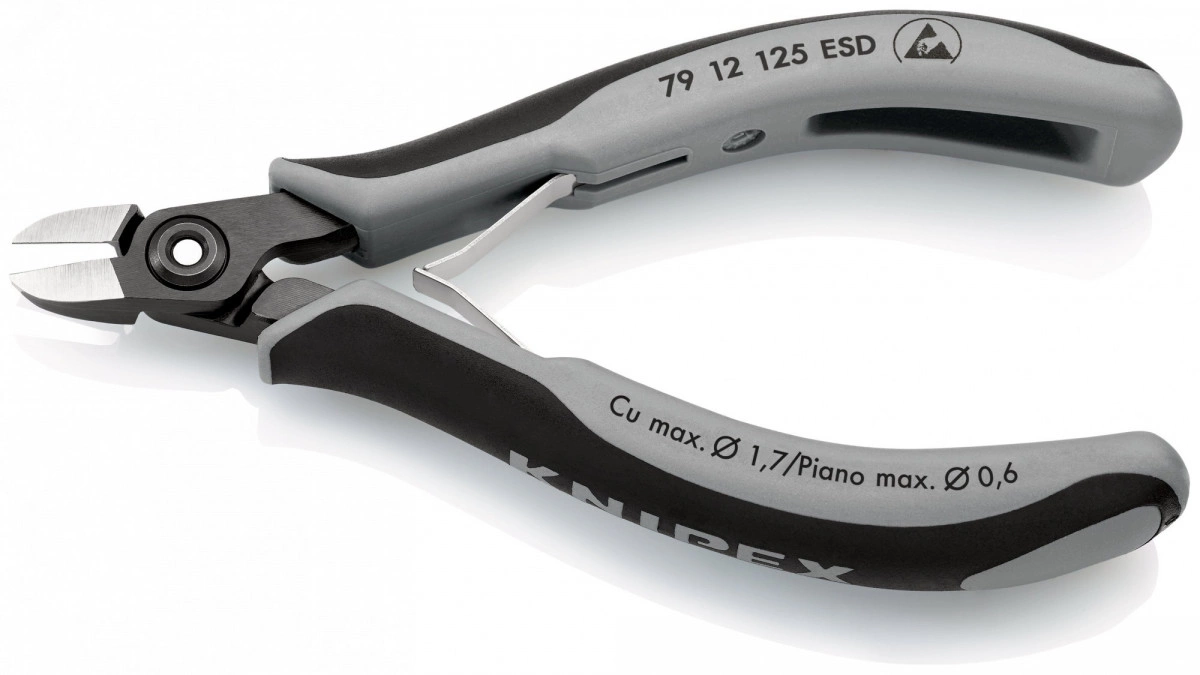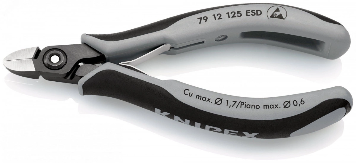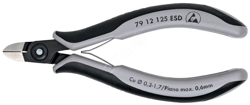 Прецизионные бокорезы для электроники антистатические ESD ручки электроотводящие с рассеянием. кусачки прецизионные для самых тонких работ по резанию, например, в электронике и точной механике. точно шлифованные режущие кромки с очень малыми фасками для точной резки чувствительных деталей электроники, также без фаски для резки заподлицо. прецизионные режущие кромки дополнительно закалены токами высокой частоты, твердость режущих кромок примерно 64 HRC. почти на 20 процентов меньший вес по сравнению с традиционными клещами для электроники. винтовой шарнир с особенно тщательно выполненными рабочими поверхностями для равномерного движения. двойная пружина с легким ходом. Эргономичные двухкомпонентные чехлы. специально для резки твердой проволоки, а также рояльной струны