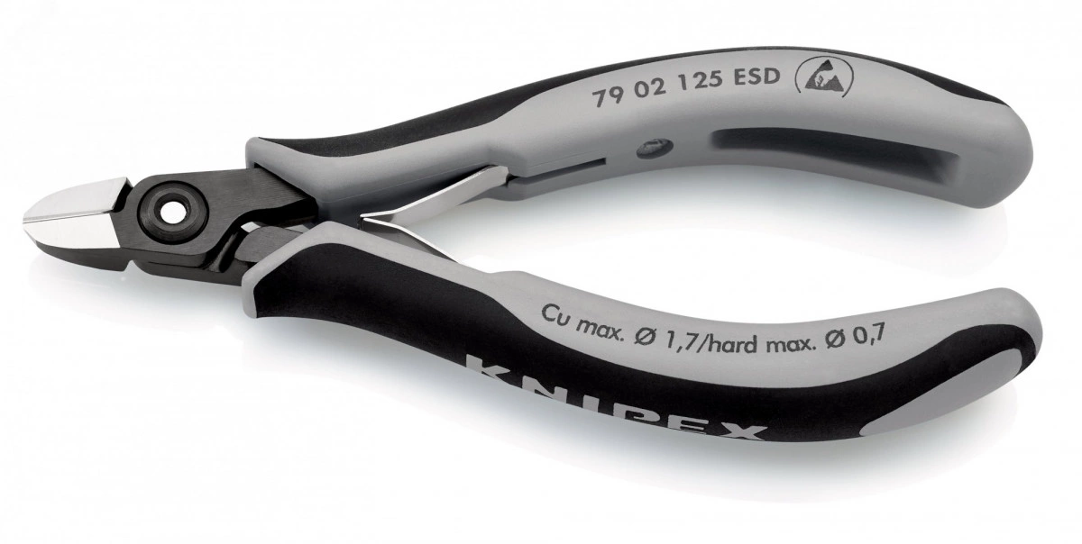 Прецизионные бокорезы для электроники антистатические ESD кусачки прецизионные для самых тонких работ по резанию, например, в электронике и точной механике. точно шлифованные режущие кромки с очень малыми фасками для точной резки чувствительных деталей электроники, также без фаски для резки заподлицо. прецизионные режущие кромки дополнительно закалены токами высокой частоты, твердость режущих кромок примерно 64 HRC. почти на 20 процентов меньший вес по сравнению с традиционными клещами для электроники. винтовой шарнир с особенно тщательно выполненными рабочими поверхностями для равномерного движения. двойная пружина с легким ходом. Эргономичные двухкомпонентные чехлы