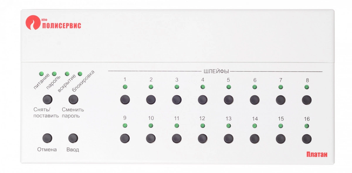 Пульт приемно-контрольный охранно-пожарный Полисервис ППКОП 'Платан-1' предназначен для работы с газовыми адресными извещателями ДГ-2 и шлейфами сигнализации, управления внешними исполнительными устройствами и отображения информации о состоянии подключенных извещателей. Поставляется в металлическом корпусе исполнения IP20.
