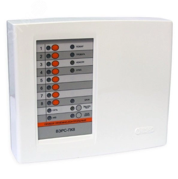 Компактный охранно-пожарный прибор для восьми зон сигнализации, сертифицирован согласно актуальным требованиям ЕАЭС 043/2017. Прибор выполнен в удобном пластмассовом корпусе с эргономичными кнопками на борту и информативными светодиодными индикаторами. Прибор поддерживает работу с любыми пороговыми пожарными и охранными извещателями. В составе прибора предусмотрен высокоэффективный импульсный основной источник питания сети 220В с расширенным диапазоном питающего напряжения, а также предусмотрено место под резервную АКБ на 12В с емкостью 4,5Ач, что позволяет прибору работать сутки при отключении основного источника питания. Прибор оснащен мощными цепями управления табличками ''Выход'' и сиренами, питающимися от 12В. Магистраль RS-485 позволяет подключать дополнительные блоки реле, блоки управления внешними оповещателями, блоки клавиатуры. В комплекте считыватель ТМ и два ключа ТМ.