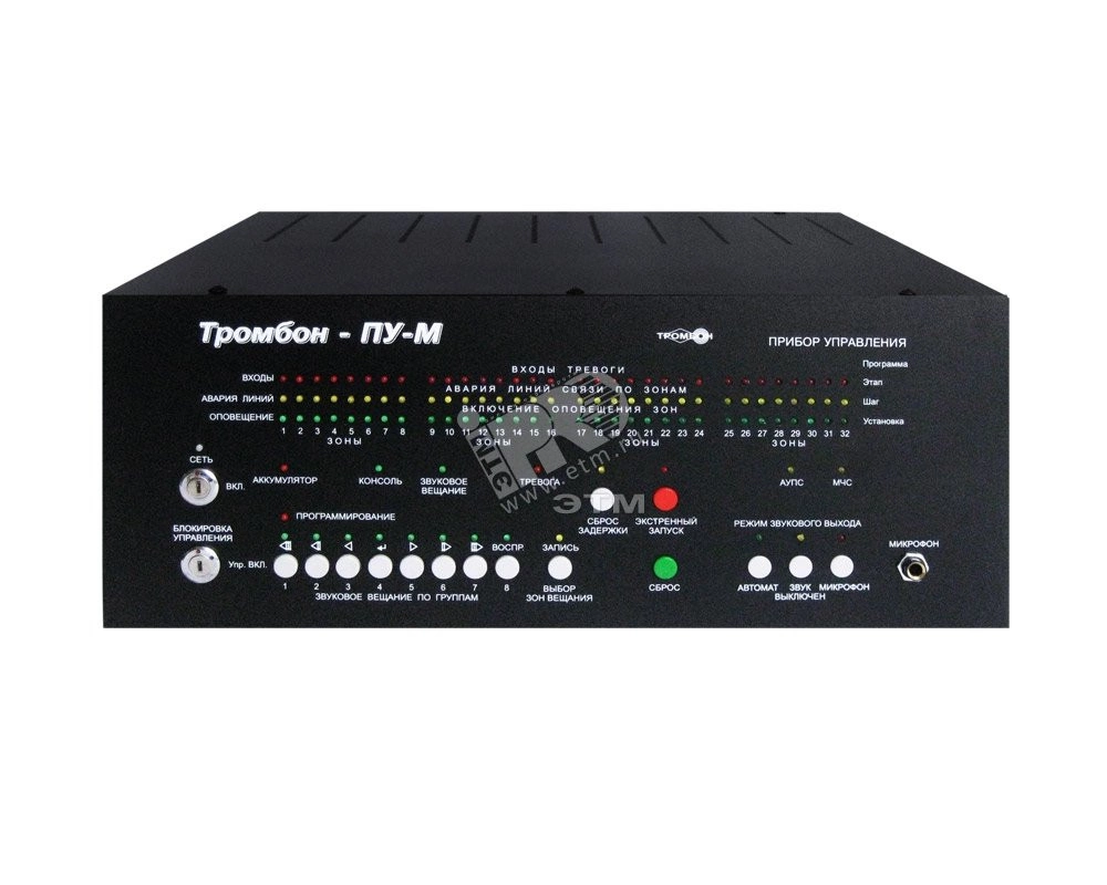 Многозонный прибор управления для построения систем оповещения 3-го, 4-го или 5-го типов с возможностью реализации различных сценариев эвакуации. Имеет гибкие настройки алгоритмов оповещения, интеллектуальную систему контроля всех линий связи, порт для подключения удаленных консолей и интерфейс для подключения к ПК и гибкие настройки режимов звукового вещания. Преимущества - - Речевое, звуковое и световое оповещение в ручном и автоматическом режимах - Прием и трансляция сигналов, передаваемых по каналам оповещения МЧС - Управление эвакуационным освещением - Управление системой контроля доступа - Контроль исправности линий связи со световыми и звуковыми оповещателями - Контроль исправности линий связи с установкой пожарной сигнализации - Контроль состояния входов тревоги - Контроль исправности связи с сопряженной системой безопасности - Различные режимы звукового вещания на объекте с возможностью обьединения зон вещания в группы - Гибкие алгоритмы оповещения