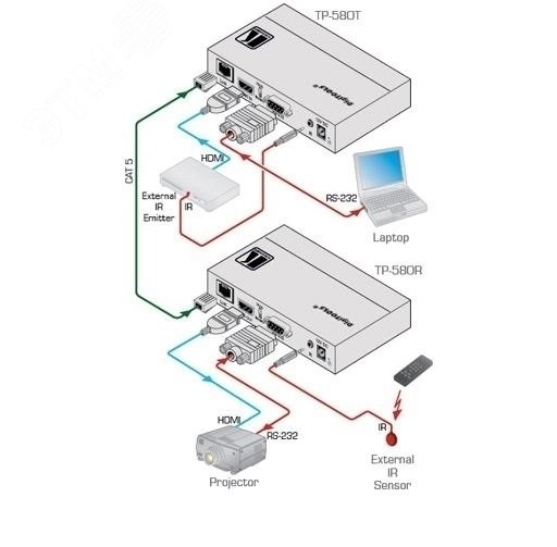 TP-580R - высококачественный приемник сигнала HDMI, двунаправленного интерфейса RS-232 и инфракрасного интерфейса по витой паре с использованием технологии HDBaseT. Получает от передатчика TP-580T перечисленные сигналы, преобразованные в пригодный для передачи по витой паре сигнал, производит их преобразование в исходные форматы.