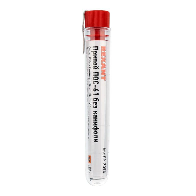 Полное описание: Припой без канифоли ПОС-61 10г d1.0мм (Sn61 Pb39) колба Rexant 09-3093