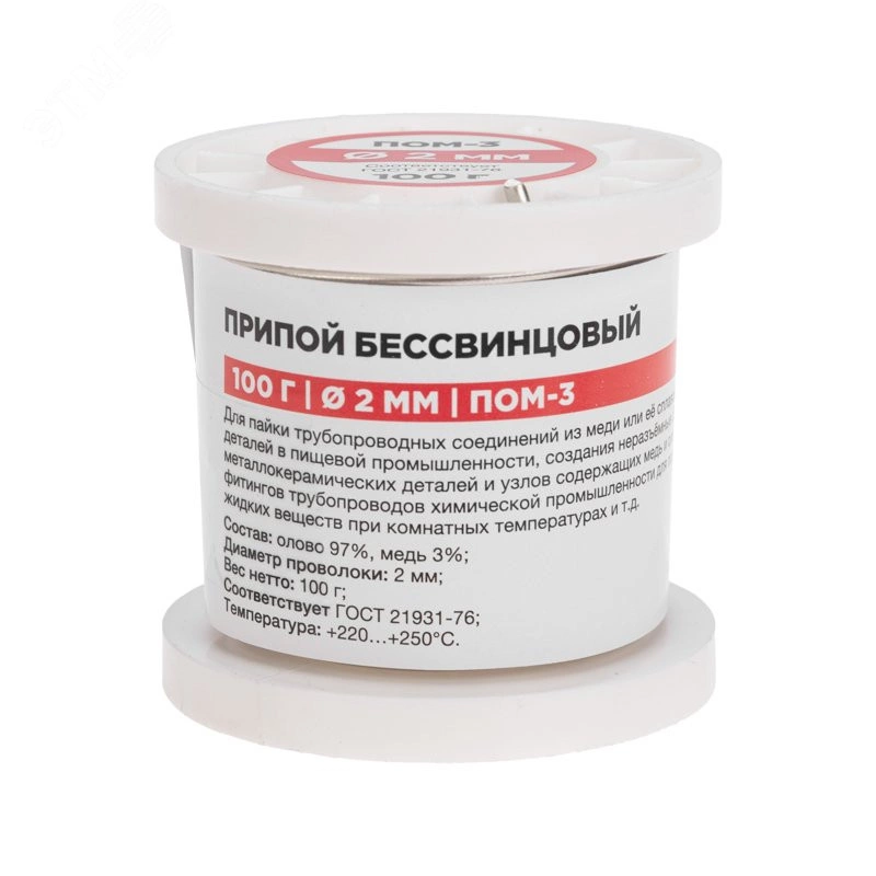 Припой ПОМ-3, 100г,2 мм, (олово 97%, медь 3%), бессвинцовый, ГОСТ 21931-76, катушка