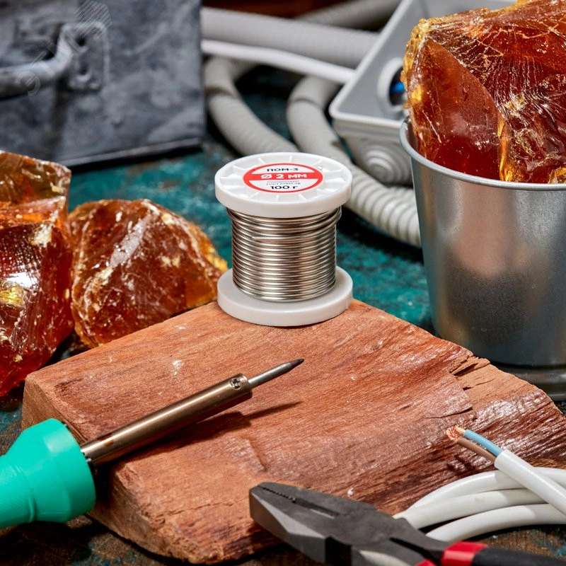 Припой с канифолью ПОС-61, 100г, 0,8мм, (олово 61%, свинец 39%), катушка