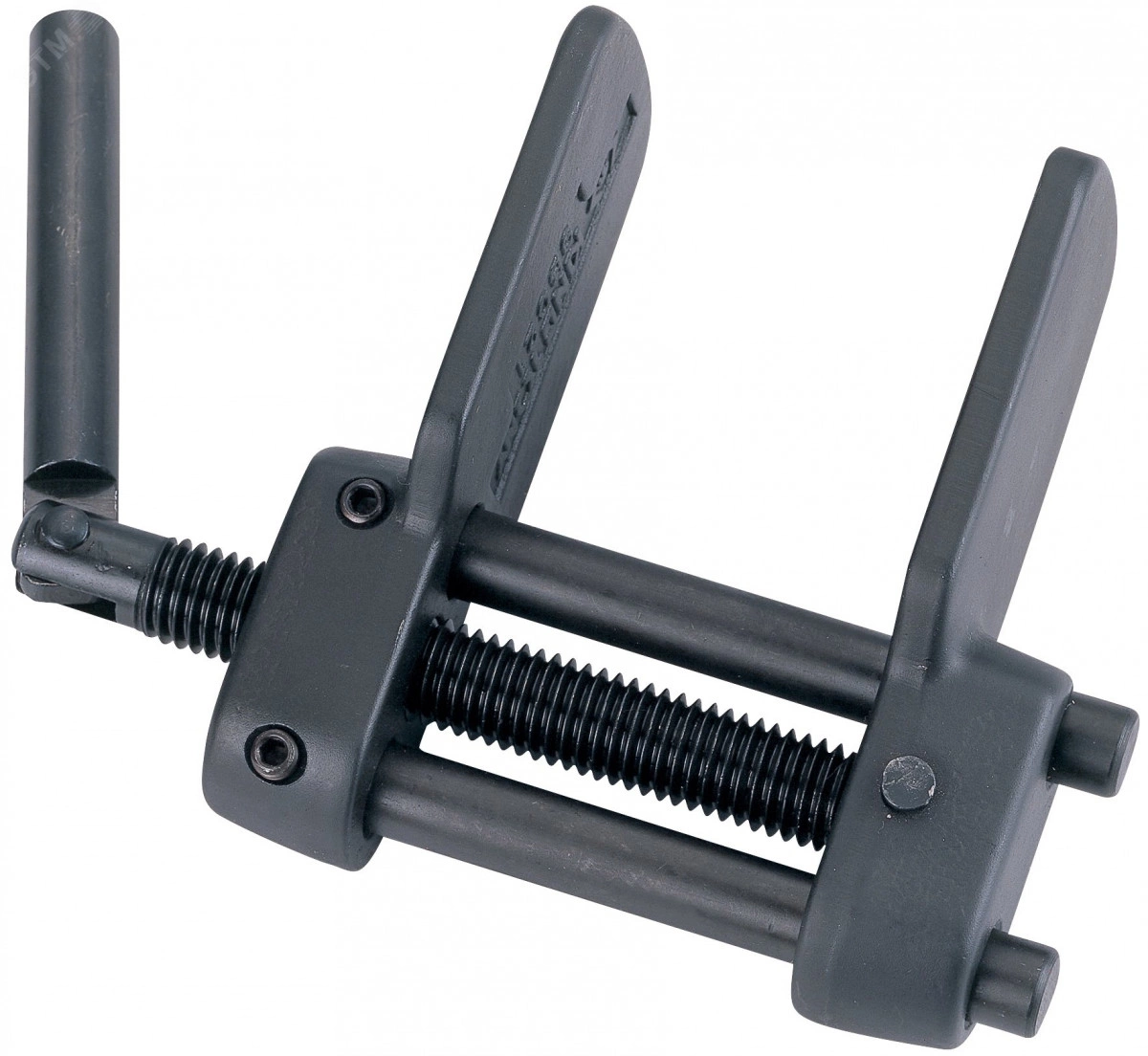 Сжатие поршня тормозного цилиндра для установки новых тормозных колодок. Максимальный ход винта – 75 мм. Применяется на станциях технического обслуживания (СТО), автосервисах, автомастерских, в промышленности, производство, строительство, бытовое применение. Приспособление изготовлено из кованой инструментальной стали. Дополнительная закалка придает особую прочность, а оксидированное покрытие защищает инструмент от коррозии. Конструкция приспособления имеет две направляющие, позволяющие контролировать соосность и параллельность расхождения опорных губок на всем рабочем диапазоне.