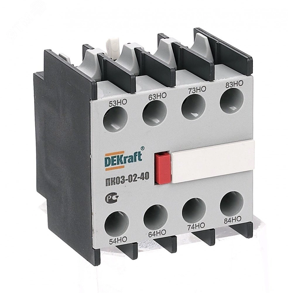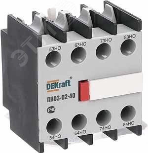 Приставка контактная серии ПК-03-02 для контакторов КМ-103 DEKraft, кол-во контактов - 4НО, ном.ток - 10 А, ном.напряжение - до 690 В, установка - с лицевой стороны, степень защиты - IP20. Приставки контактные предназначены для увеличения количества вспомогательных контактов контактора. Контактные приставки механически соединяются с контакторами и фиксируются при помощи защелки. Приставка подходит для использования с контакторами других производителей.