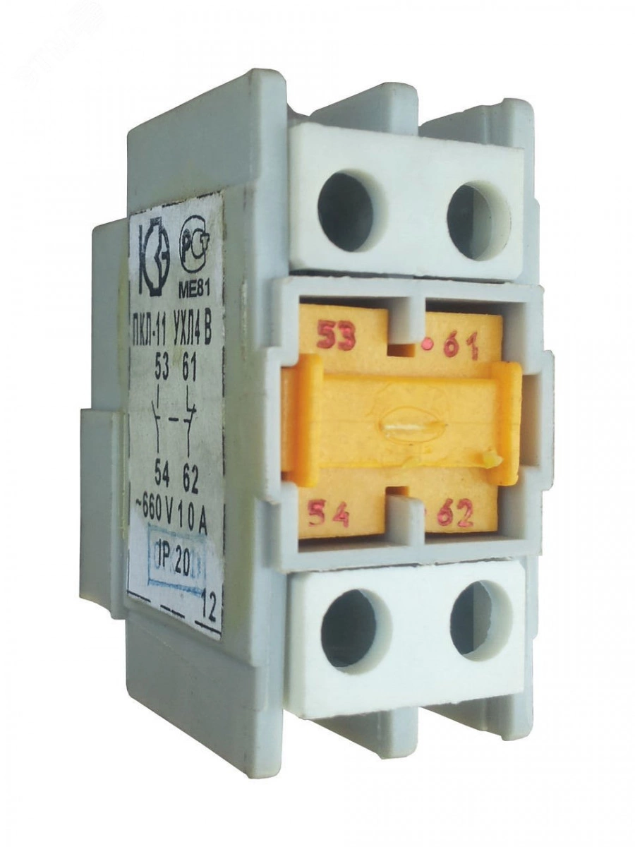 Приставки контактные ПКЛ предназначены для увеличения количества вспомогательных контактов контакторов и пускателей электромагнитных на номинальный ток от 12 до 63 А серий ПМ12, ПМ12К и ПМЛ. Устанавливаются сверху аппаратов по одной приставке ПКЛ на нереверсивный контактор или пускатель, на каждый из двух контакторов реверсивного контактора или пускателя.