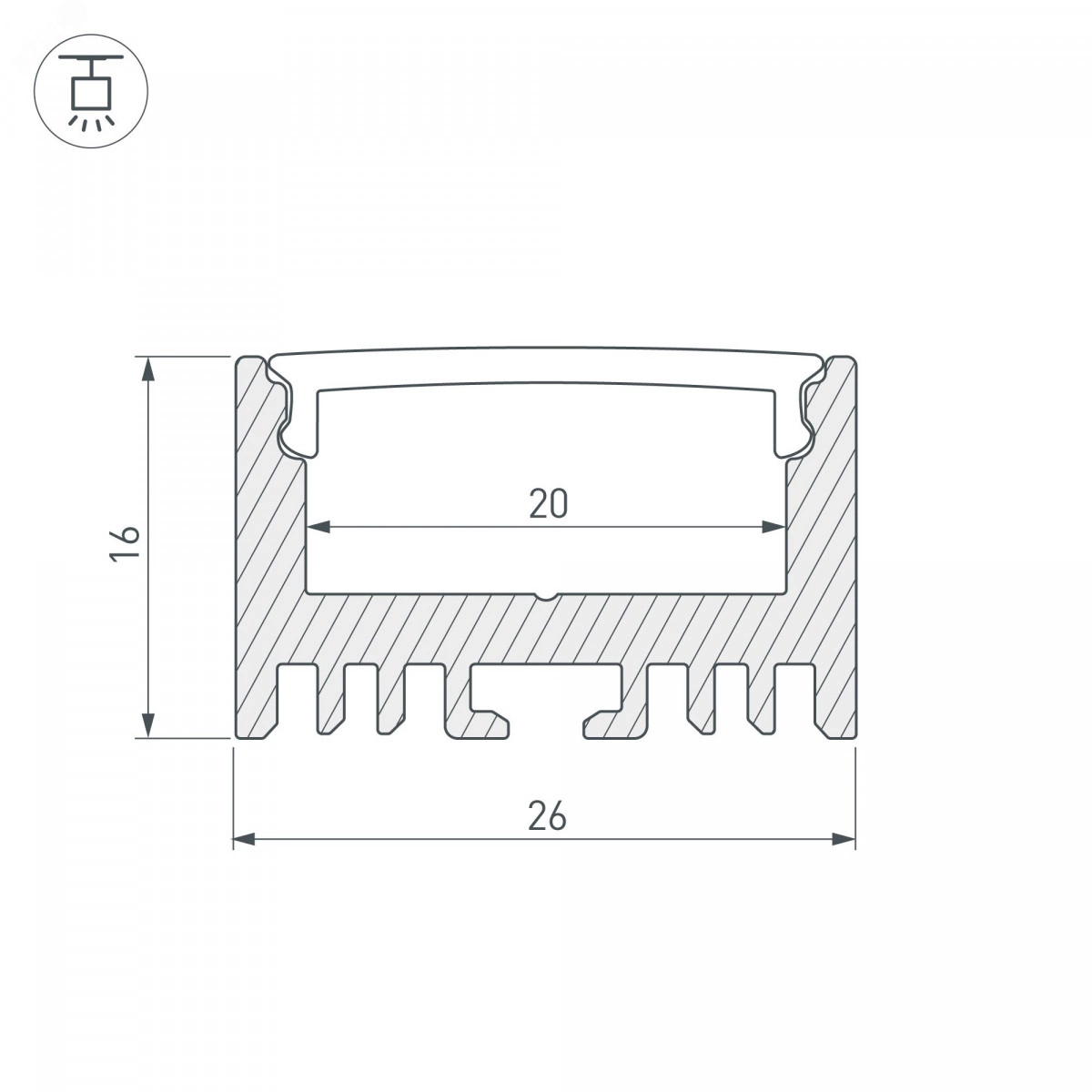 Алюминиевый анодированный подвесной профиль для светодиодных лент и линеек. Габаритные размеры (LWH) - 2000x26x16 мм. Ширина площадки для ленты 20 мм. Экраны, заглушки и другие аксессуары приобретаются отдельно.