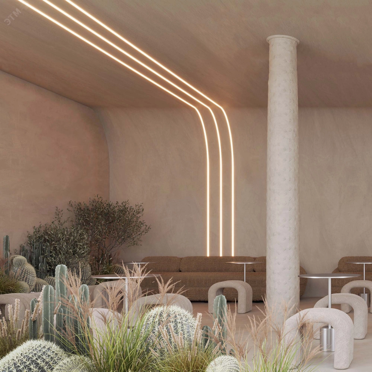 Встраиваемый гибкий профиль из анодированного алюминия со скрытым фланцем под строительную отделку устанавливается в потолки и потолочные ниши из гипсокартона. Минимальный радиус вертикального изгиба (вверх/вниз) 30 см. Габаритные размеры профиля составляют 2000 ммв длину, 52,8 ммв ширину и 11,8 ммв высоту. Площадка для установки светодиодных лент позволяет использовать ленту шириной до 10,6 мми мощностью до 16 Вт/м. Это обеспечивает гибкость в выборе светодиодных лент и создает потрясающие световые решения. Совместим с прямым алюминиевым профилем FANTOM-W12 и гибким FANTOM-BENT-W12-SIDE. Сочетание разных видов профиля поможет подчеркнуть как прямые, так и изогнутые контуры интерьера, а также создать круги и волнообразные линии, переходящие с потолка на стены. Экраны, заглушки и другие аксессуары не включены в комплект и приобретаются отдельно. Цена указана за 1 метр профиля.