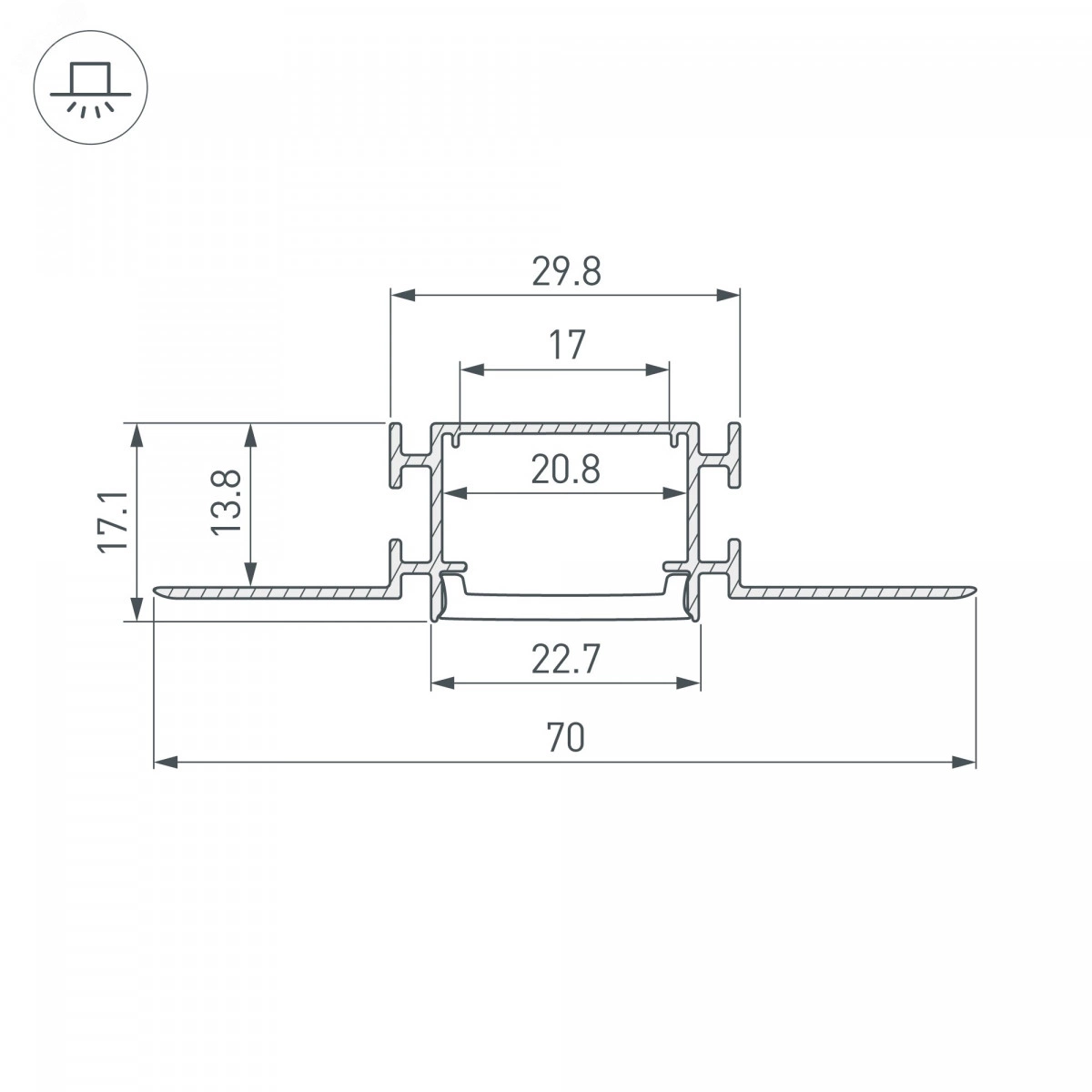 Встраиваемый гибкий профиль из анодированного алюминия со скрытым фланцем под строительную отделку устанавливается в потолки и потолочные ниши из гипсокартона. Минимальный радиус вертикального изгиба (вверх/вниз) 30 см. Габаритные размеры профиля составляют 2000 ммв длину, 70 ммв ширину и 17,1 ммв высоту. Площадка для установки светодиодных лент позволяет использовать ленту шириной до 17 мми мощностью до 23 Вт/м. Совместим с прямым алюминиевым профилем FANTOM-W23 и гибким FANTOM-BENT-W23-SIDE. Сочетание разных видов профиля поможет подчеркнуть как прямые, так и изогнутые контуры интерьера, а также создать круги и волнообразные линии, переходящие с потолка на стены. Экраны, заглушки и другие аксессуары не включены в комплект и приобретаются отдельно. Цена указана за 1 метр профиля.