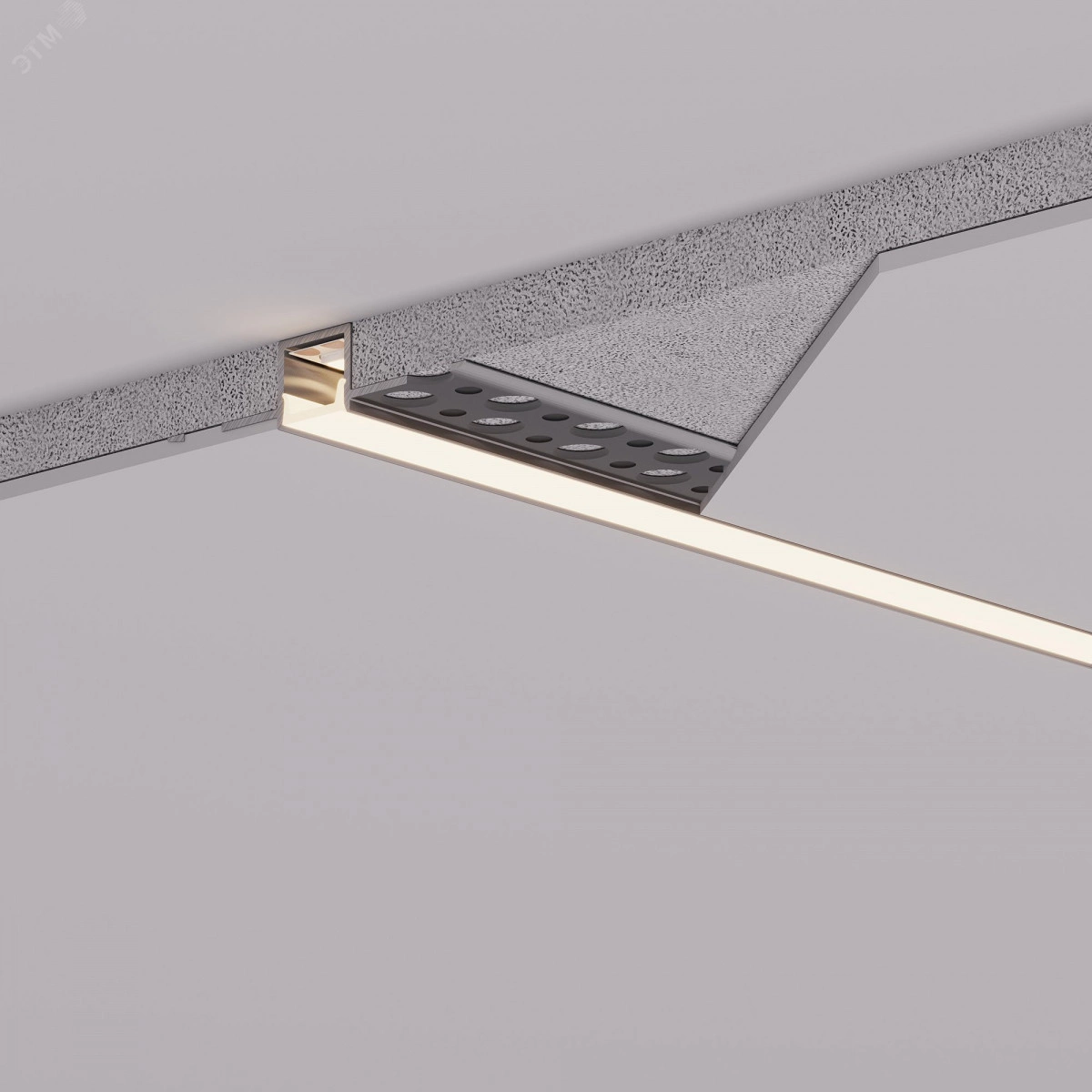 Встраиваемый профиль из анодированного алюминия со скрытым фланцем под строительную отделку устанавливается в потолки и потолочные ниши из гипсокартона. Габаритные размеры профиля составляют 2000 мм в длину, 52,8 мм в ширину и 11,8 мм в высоту. Площадка для установки светодиодных лент позволяет использовать ленту шириной до 10,6 мм и мощностью до 30 Вт/м. Это обеспечивает гибкость в выборе светодиодных лент и создает потрясающие световые решения. Совместим с гибкими алюминиевыми профилями FANTOM-BENT-W12-TOP и FANTOM-BENT-W12-SIDE. Сочетание разных видов профиля поможет подчеркнуть как прямые, так и изогнутые контуры интерьера, а также создать круги и волнообразные линии, переходящие с потолка на стены. Экраны, заглушки и другие аксессуары не включены в комплект и приобретаются отдельно. Цена указана за 1 метр профиля.