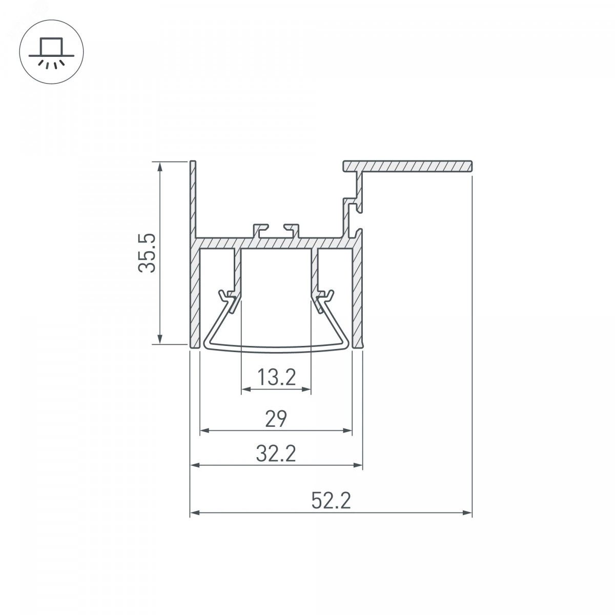 Встраиваемый алюминиевый профиль (боковая линия - монтаж к потолку) для дизайнерских решений 'линии света' в натяжных потолках. Решение 2-в-1- служит каркасом для крепления натяжного потолка и профилем для установки светодиодной ленты. Габаритные размеры профиля составляют 3000 мм в длину, 52,2 мм в ширину и 35,5 мм в высоту. Площадка для установки светодиодных лент позволяет использовать ленту шириной до 13 мм и мощностью до 43 Вт/м. Это обеспечивает гибкость в выборе светодиодных лент и создает потрясающие световые решения. Экран, заглушки и другие аксессуары не включены в комплект и приобретаются отдельно. Цена указана за 1 метр профиля. Отличное решение для создания современных световых проектов.