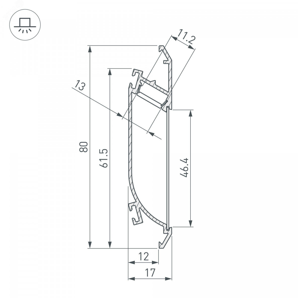 Алюминиевый анодированный профиль для подсветки стен. Подходит для гипсокартона толщиной 12мм. Габаритные размеры (LWH) - 2000x17x80 мм. Ширина площадки для ленты 11,2 мм. Экраны, заглушки и другие аксессуары приобретаются отдельно.