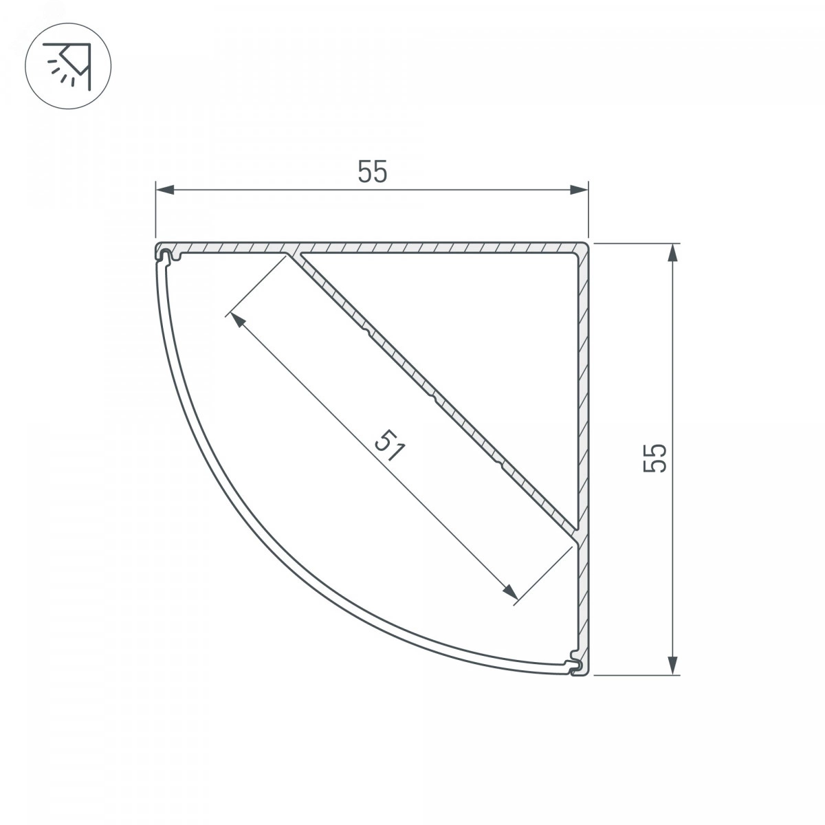 Угловой профиль из анодированного алюминия для контурной подсветки интерьера. Габаритные размеры профиля составляют 2000 ммв длину, 55 ммв ширину и 55 ммв высоту. Площадка для установки светодиодных лент позволяет использовать ленту шириной до 51 мми мощностью до 49 Вт/м. Это обеспечивает гибкость в выборе светодиодных лент и создает потрясающие световые решения. Экраны, заглушки и другие аксессуары не включены в комплект и приобретаются отдельно. Цена указана за 1 метр профиля. Отличное решение для создания современных световых проектов.