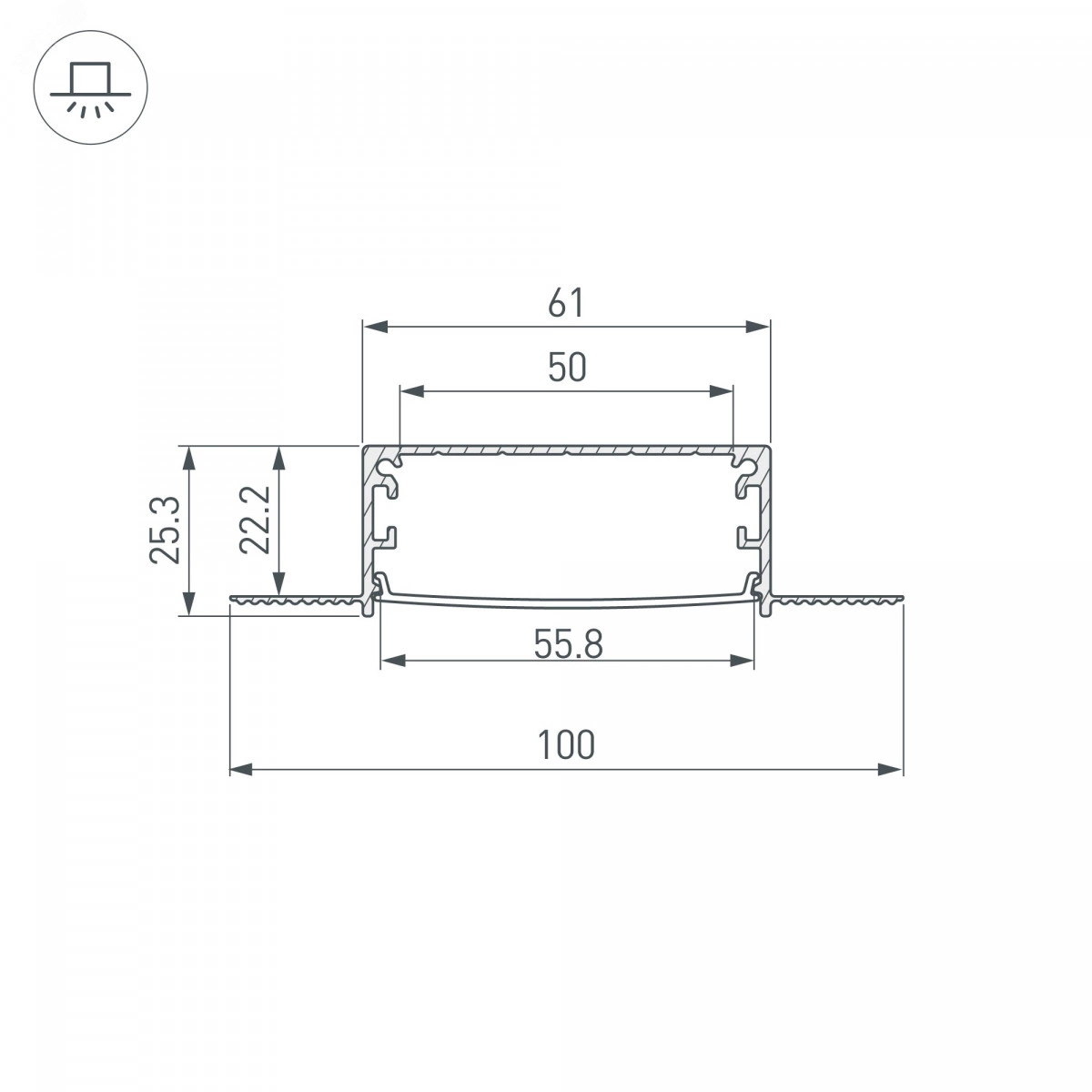 Встраиваемый профиль со скрытым фланцем под строительную отделку из анодированного алюминия для основной и контурной подсветки помещений. Габаритные размеры профиля составляют 3000 ммв длину, 100 ммв ширину и 25,3 ммв высоту. Площадка для установки светодиодных лент позволяет использовать ленту шириной до 50 мми мощностью до 65 Вт/м. Это обеспечивает гибкость в выборе светодиодных лент и создает потрясающие световые решения. Экраны, заглушки и другие аксессуары не включены в комплект и приобретаются отдельно. Цена указана за 1 метр профиля. Отличное решение для создания современных световых проектов.