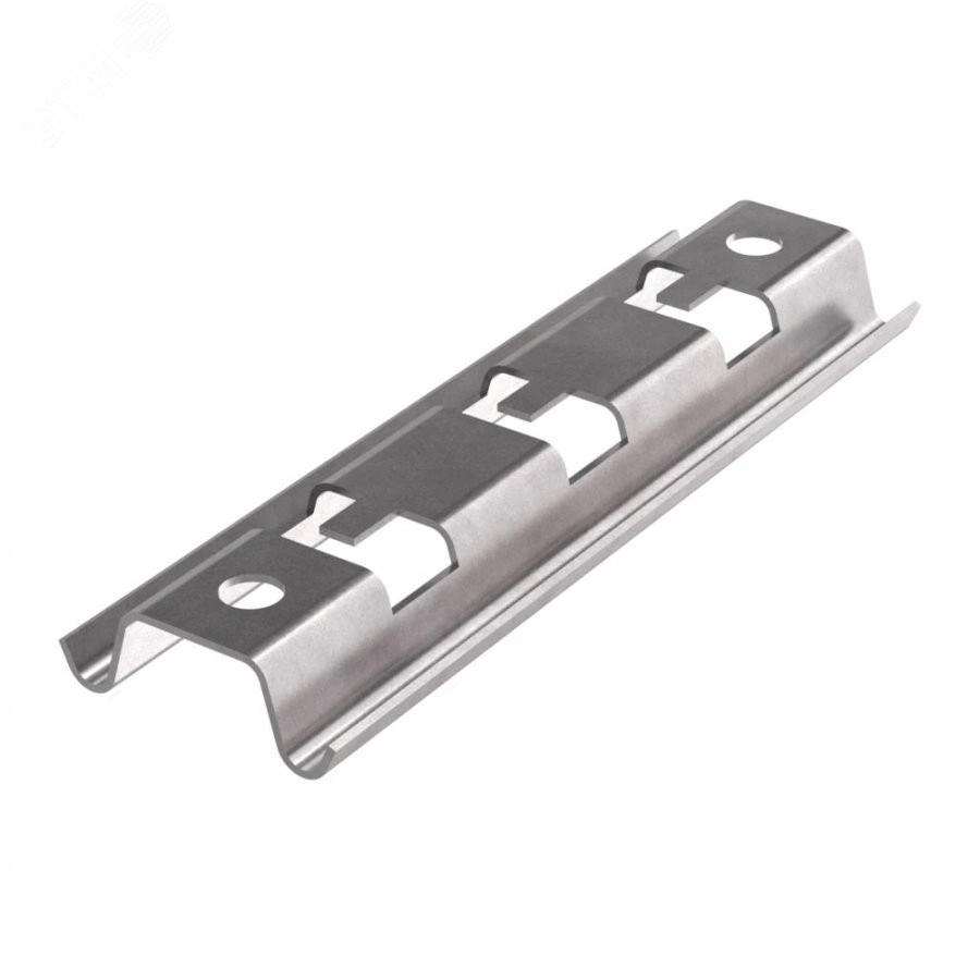 Омега-профиль горизонтальный безвинтовой применяется для подвеса лотка на шпильку. Для фиксации лотка необходимо согнуть лепестки кронштейна шлицевой отверткой.