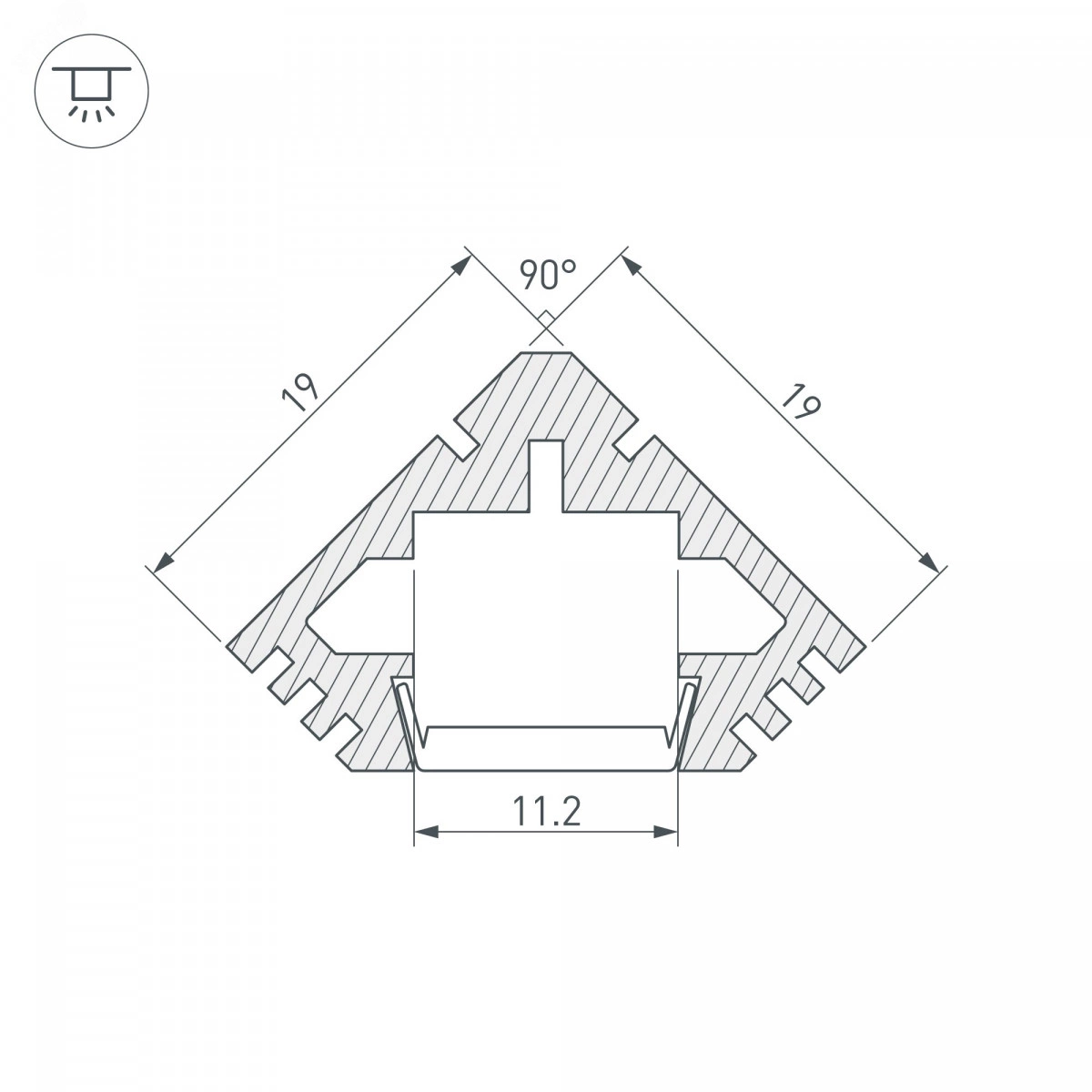 Алюминиевый анодированный угловой профиль для светодиодных лент и линеек. Анодированный в чёрный цвет. Габаритные размеры (LWH) - 2000x19x19 мм. Ширина площадки для ленты 11,2 мм. Экраны, заглушки и другие аксессуары приобретаются отдельно.