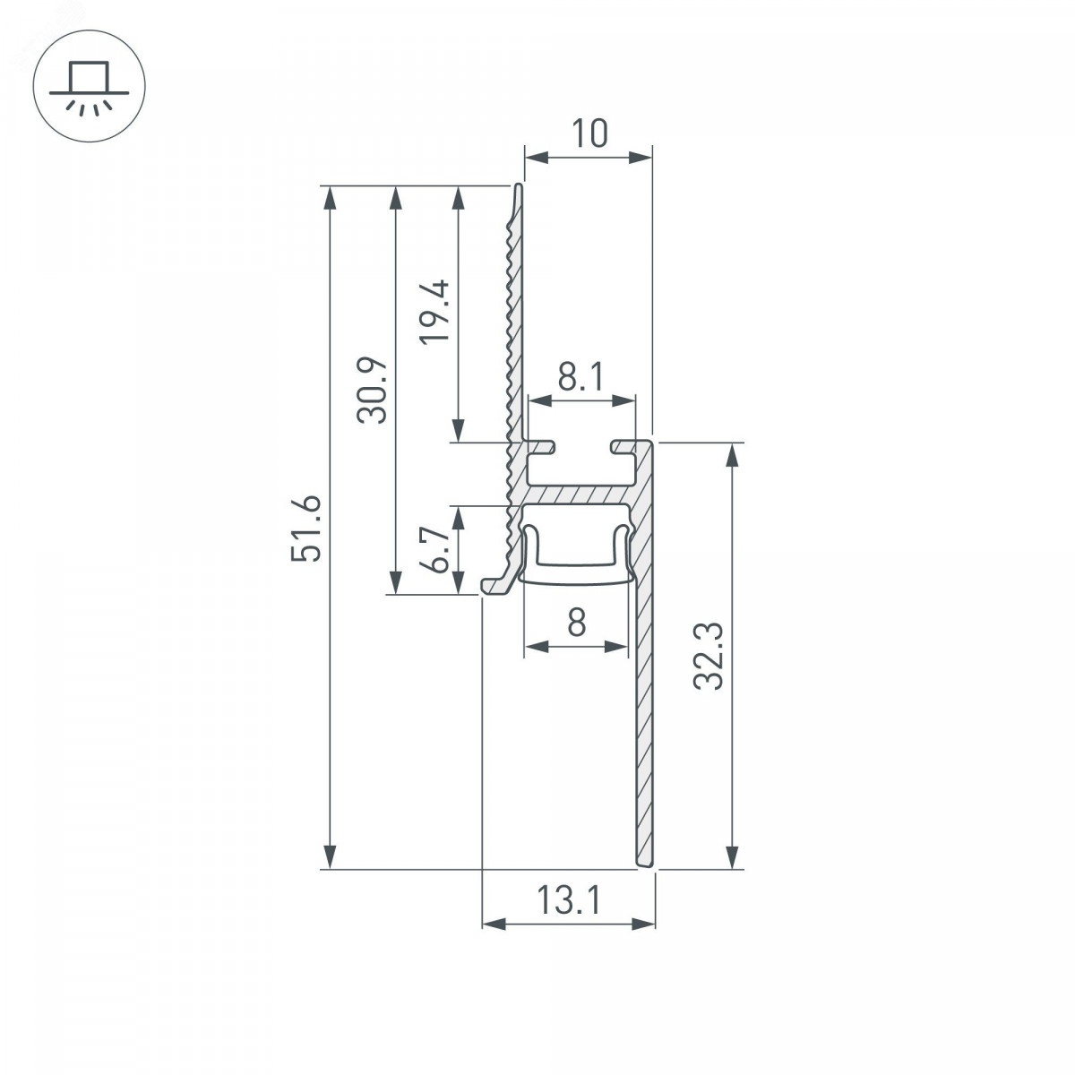 Встраиваемый алюминиевый профиль черного цвета для светодиодных лент и линеек под строительную отделку для создания эффекта парящей стены. Не является плинтусом, используется как декоративная накладка на фальш-стены. Габаритные размеры этого профиля составляют 2000 мм в длину, 13,1 мм в ширину и 51,6 мм в высоту. Площадка для установки светодиодных лент позволяет использовать ленту шириной до 8 мм и мощностью до 22 Вт/м. Это обеспечивает гибкость в выборе светодиодных лент и создает потрясающие световые решения. Экран, заглушки и другие аксессуары не включены в комплект и приобретаются отдельно. Для данной модели профиля представлено два вида экрана- силиконовый экран W10-5000 SILICONE 043661 (совместим с заглушками PLINTUS-FANTOM-BENT 043905 и 043662) и пластиковый экран W10-2000 OPAL 043606 (совместим с заглушками PLINTUS-FANTOM 043608 и 043907). Цена указана за 1 метр профиля. Отличное решение для создания современных световых проектов.