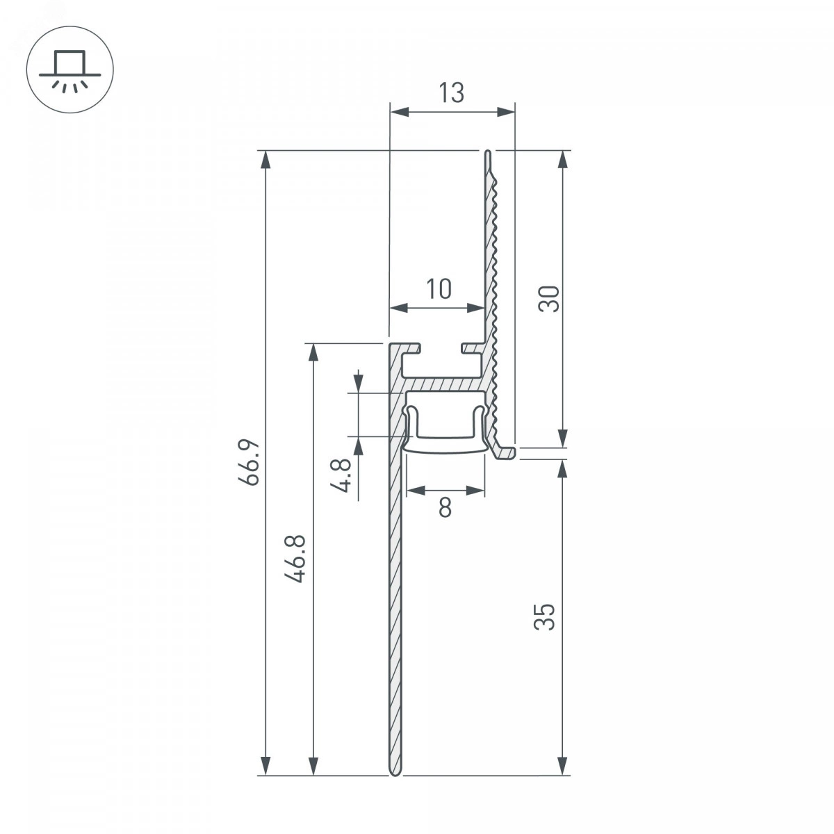 Встраиваемый алюминиевый профиль черного цвета для светодиодных лент и линеек под строительную отделку для создания эффекта парящей стены. Не является плинтусом, используется как декоративная накладка на фальш-стены. Габаритные размеры этого профиля составляют 2000 ммв длину, 13ммв ширину и 66,9 ммв высоту. Площадка для установки светодиодных лент позволяет использовать ленту шириной до 8 мми мощностью до 23 Вт/м. Это обеспечивает гибкость в выборе светодиодных лент и создает потрясающие световые решения. Экран, заглушки и другие аксессуары не включены в комплект и приобретаются отдельно. Для данной модели профиля представлено два вида экрана- силиконовый экран W10-5000 SILICONE 043661 (совместим с заглушками PLINTUS-FANTOM-BENT 043905 и 043662) и пластиковый экран W10-2000 OPAL 043606 (совместим с заглушками PLINTUS-FANTOM 043608 и 043907). Цена указана за 1 метр профиля. Отличное решение для создания современных световых проектов.
