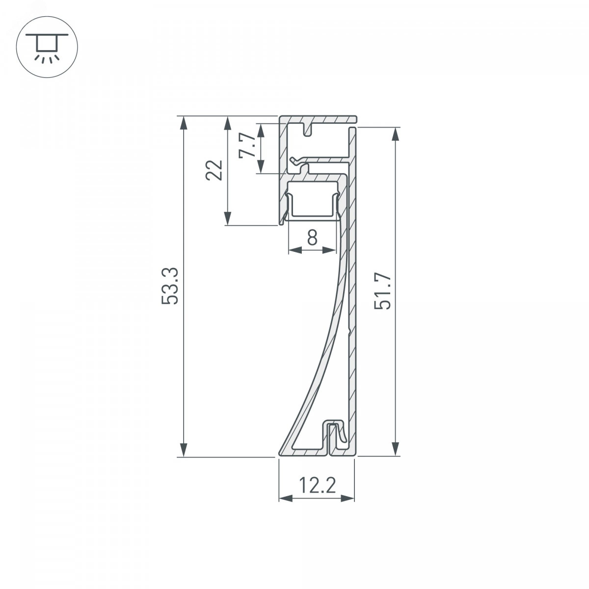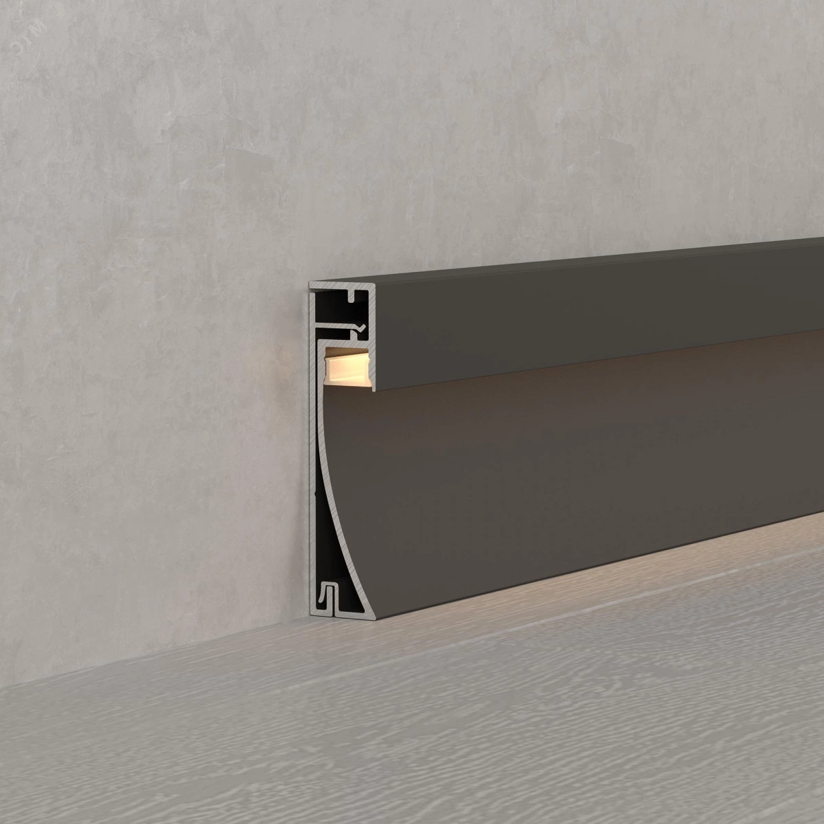 Накладной двухкомпонентный алюминиевый профиль-плинтус черного цвета для контурной подсветки помещения. Габаритные размеры этого профиля составляют 2000 ммв длину, 12,2 ммв ширину и 53,3 ммв высоту. Площадка для установки светодиодных лент позволяет использовать ленту шириной до 8 мми мощностью до 20 Вт/м. Это обеспечивает гибкость в выборе светодиодных лент и создает потрясающие световые решения. Экран, заглушки и другие аксессуары не включены в комплект и приобретаются отдельно. Цена указана за 1 метр профиля. Простая установка без предварительной подготовки стен. Отличное решение для создания современных световых проектов.