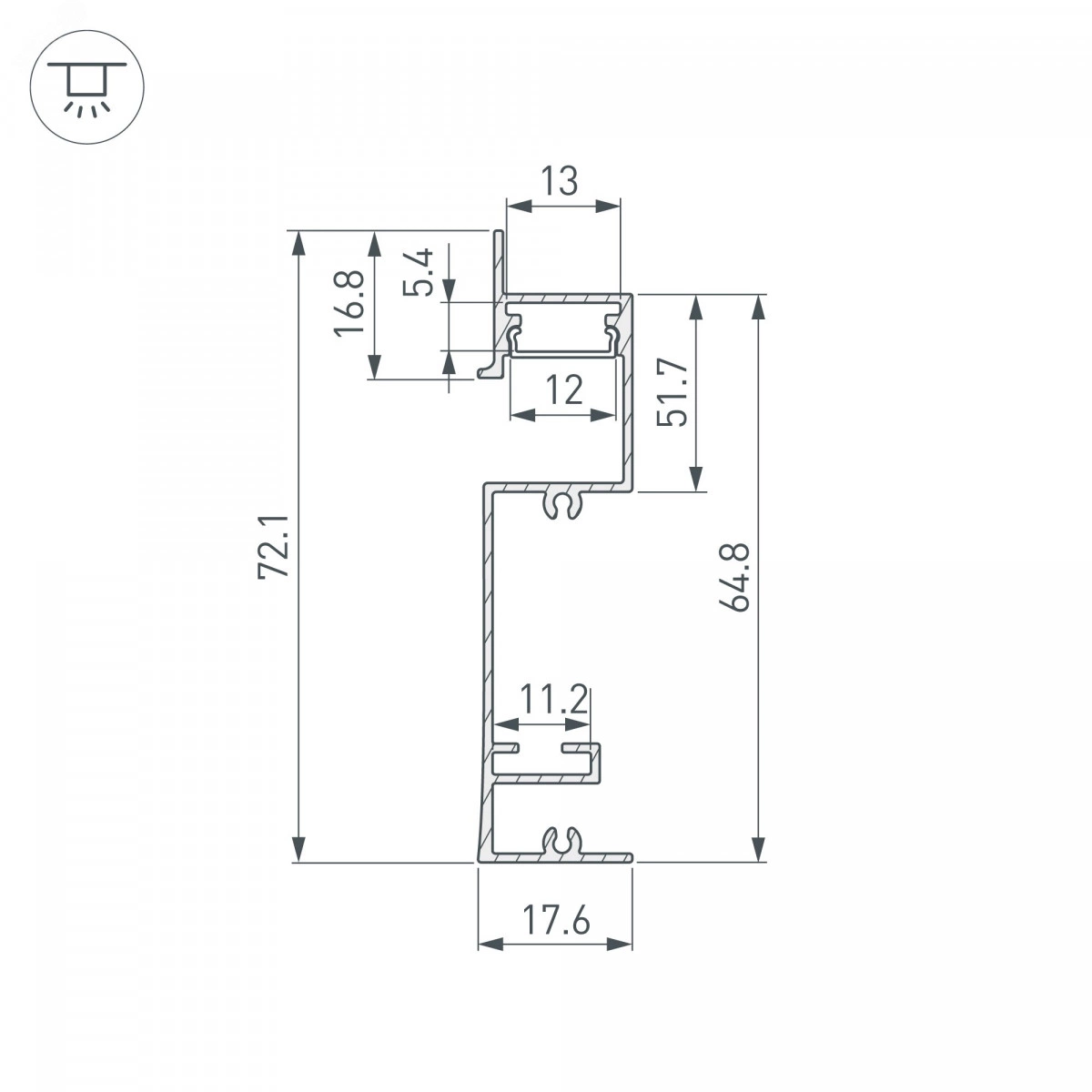 Встраиваемый алюминиевый профиль-плинтус с накладным фланцем черного цвета для создания эффекта парящей стены. Габаритные размеры этого профиля составляют 2000 мм в длину, 17,6 мм в ширину и 72,1 мм в высоту. Площадка для установки светодиодных лент позволяет использовать ленту шириной до 12 мм и мощностью до 32 Вт/м. Это обеспечивает гибкость в выборе светодиодных лент и создает потрясающие световые решения. Экран, заглушки и другие аксессуары не включены в комплект и приобретаются отдельно. Цена указана за 1 метр профиля. Отличное решение для создания современных световых проектов.