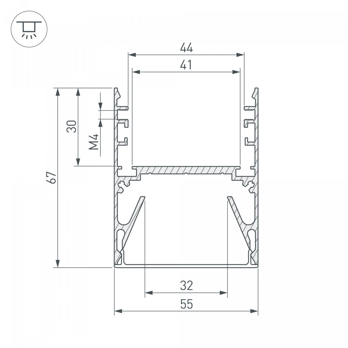 Комплект с экраном. Алюминиевый анодированный профиль для светодиодных лент и линеек, с отсеком для блока питания. Размер отсека 29х44мм. Габаритные размеры (LWH) - 2000x55x67,4 мм. Ширина площадки для ленты 32,3 мм. Аксессуары приобретаются отдельно.