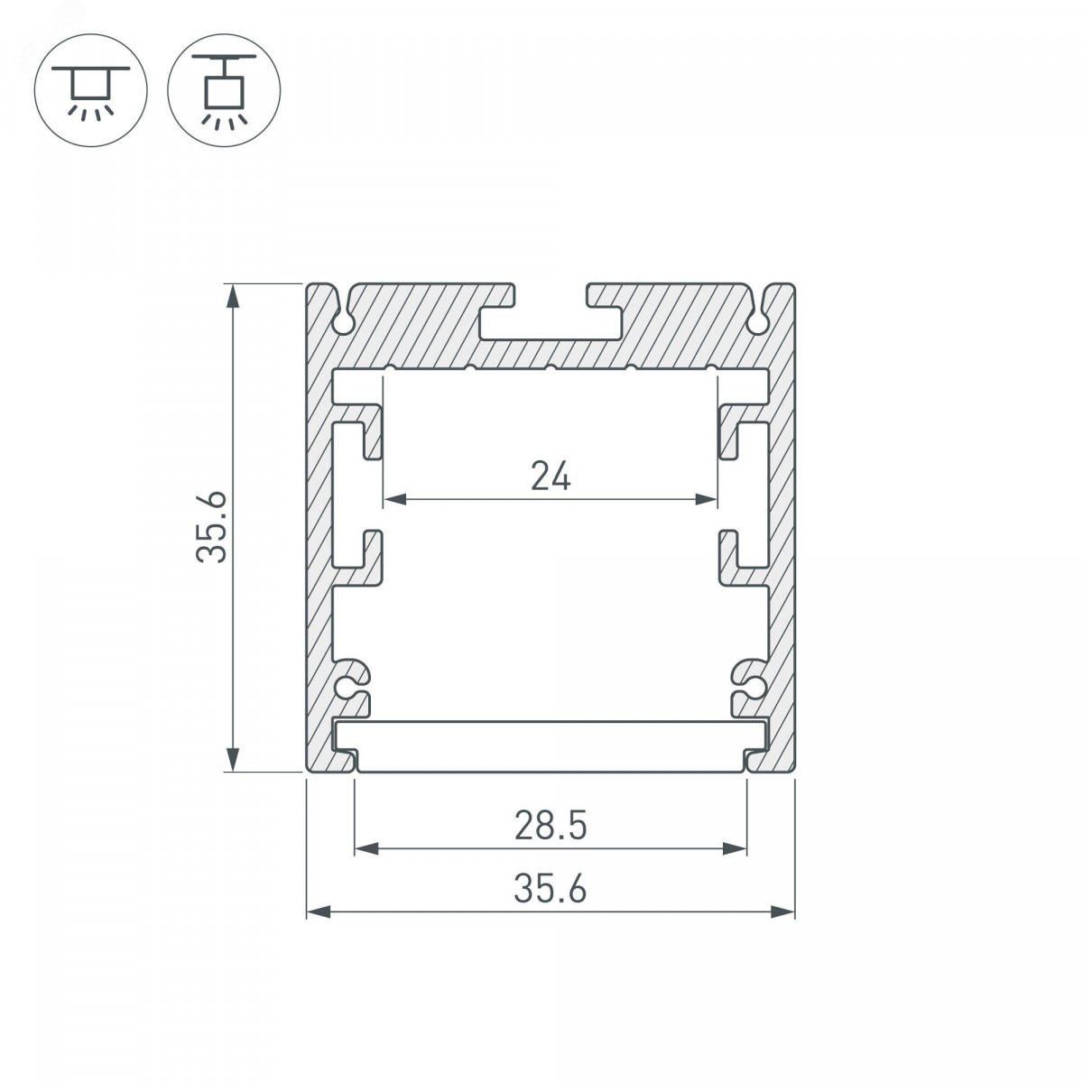 Алюминиевый анодированный профиль для светодиодных лент и линеек. Габаритные размеры (LWH) - 2500x35x35 мм. Ширина площадки для ленты 24 мм. Экраны, заглушки и другие аксессуары приобретаются отдельно.