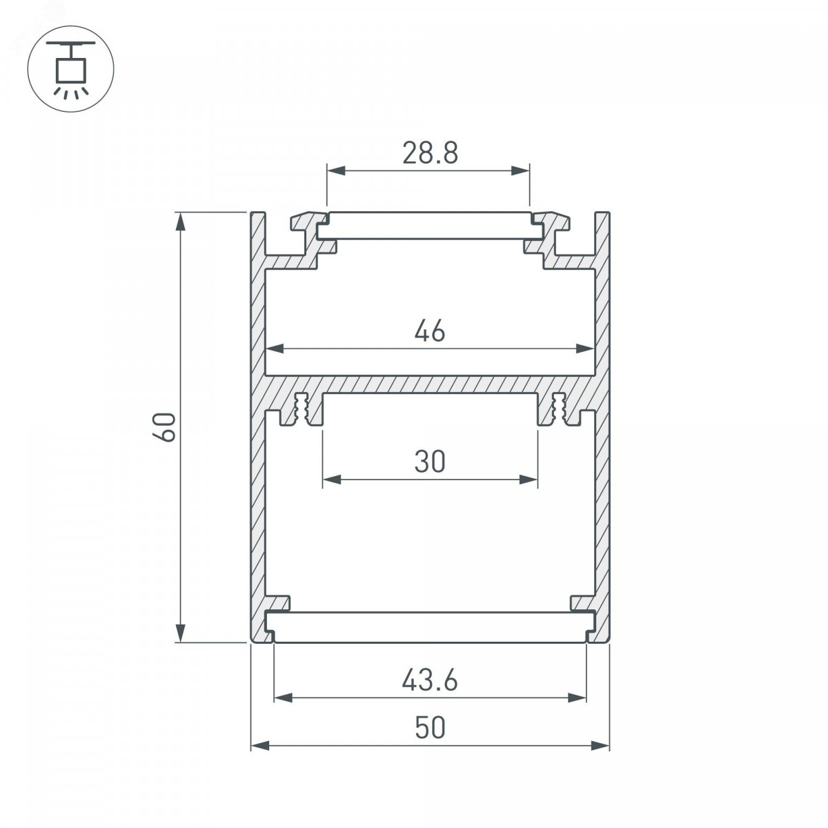 Подвесной алюминиевый профиль белого цвета (RAL9003 порошковая окраска) для составления круга диаметром 1000мм с выводом свечения вверх и вниз (? часть круга- внутренний диаметр - 950мм, внешний диаметр - 1050мм). Габаритные размеры профиля составляют 785,4 мм в длину, 50 мм в ширину и 60 мм в высоту. Двусторонняя площадка для установки светодиодных лент позволяет использовать ленты шириной до 30 мм и мощностью до 29 Вт/м каждая. Это обеспечивает гибкость в выборе светодиодных лент и создает потрясающие световые решения. Экраны, заглушки и другие аксессуары не включены в комплект и приобретаются отдельно. Цена указана за 1 метр профиля. Отличное решение для создания современных световых проектов.