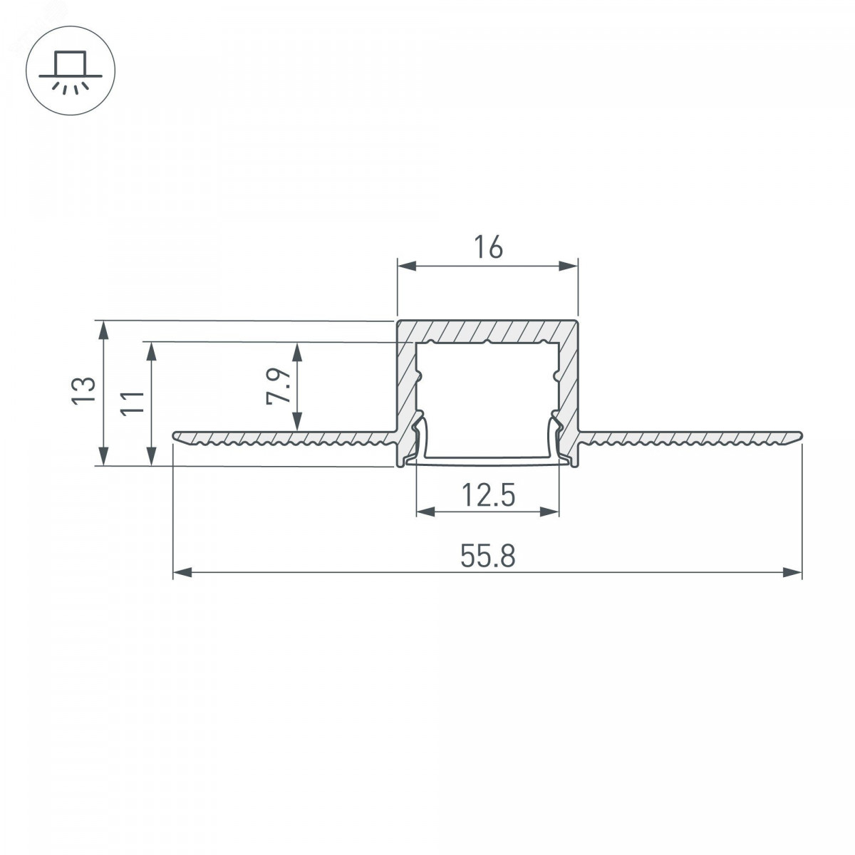 Встраиваемый профиль со скрытым фланцем из анодированного алюминия под строительную отделку для контурной подсветки интерьера. Габаритные размеры профиля составляют 2000 мм в длину, 55,8 мм в ширину и 13 мм в высоту. Площадка для установки светодиодных лент позволяет использовать ленту шириной до 12 мм и мощностью до 36 Вт/м. Это обеспечивает гибкость в выборе светодиодных лент и создает потрясающие световые решения. Экран, заглушки и другие аксессуары не включены в комплект и приобретаются отдельно. Цена указана за 1 метр профиля. Отличное решение для создания современных световых проектов.