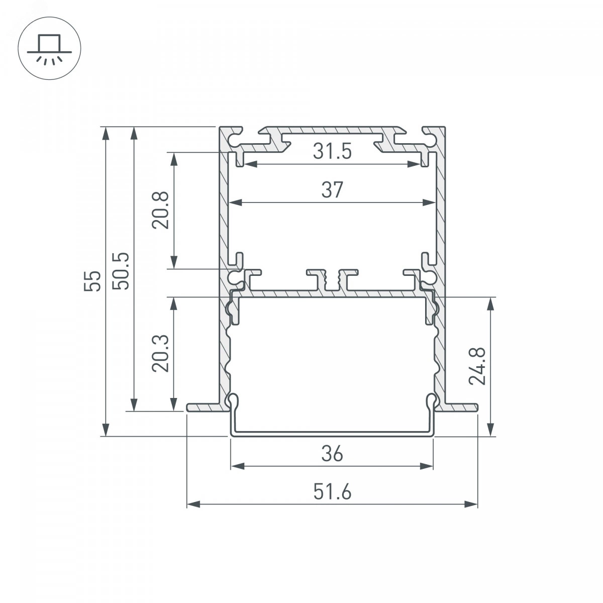 Встраиваемый профиль черного цвета с накладным фланцем из анодированного алюминия для основного освещения и контурной подсветки. Возможность установки экрана на трех уровнях- выступая за края профиля, вровень с профилем и утоплено, позволяет получить разные световые эффекты. Отсек для блока питания (31,5х20,8 мм и съемная площадка для светодиодной ленты значительно облегчают сервисное обслуживание осветительного оборудования. Габаритные размеры профиля составляют 2000 ммв длину, 51,6 ммв ширину и 50,5 ммв высоту. Площадки для установки светодиодных лент позволяют использовать ленты шириной до 33 мми мощностью до 47 Вт/м. Это обеспечивает гибкость в выборе светодиодных лент и создает потрясающие световые решения. Экраны, заглушки и другие аксессуары не включены в комплект и приобретаются отдельно. Цена указана за 1 метр профиля. Отличное решение для создания современных световых проектов.