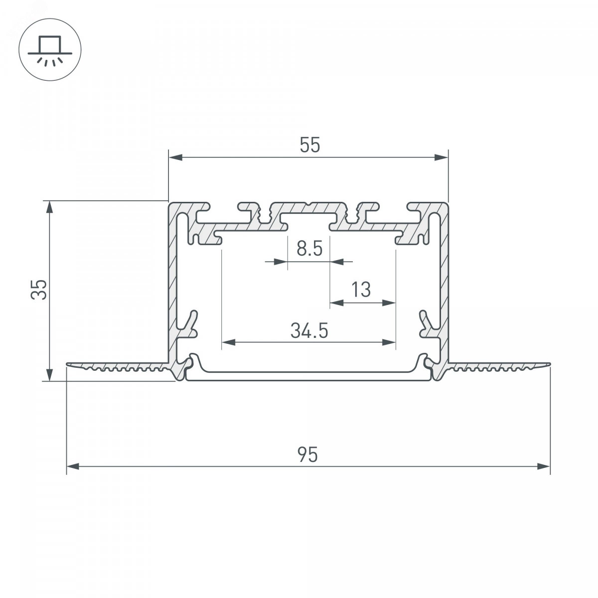 Алюминиевый анодированный профиль для светодиодных лент и линеек. Для использования с гибким экраном SL-Seamless (поставляется в рулонах). Габаритные размеры (LWH) - 2500x95x35 мм, паз для установки 55 мм. Ширина площадки для ленты 37,5 мм. Экраны, заглушки и другие аксессуары приобретаются отдельно. Цена за 2,5 метра.