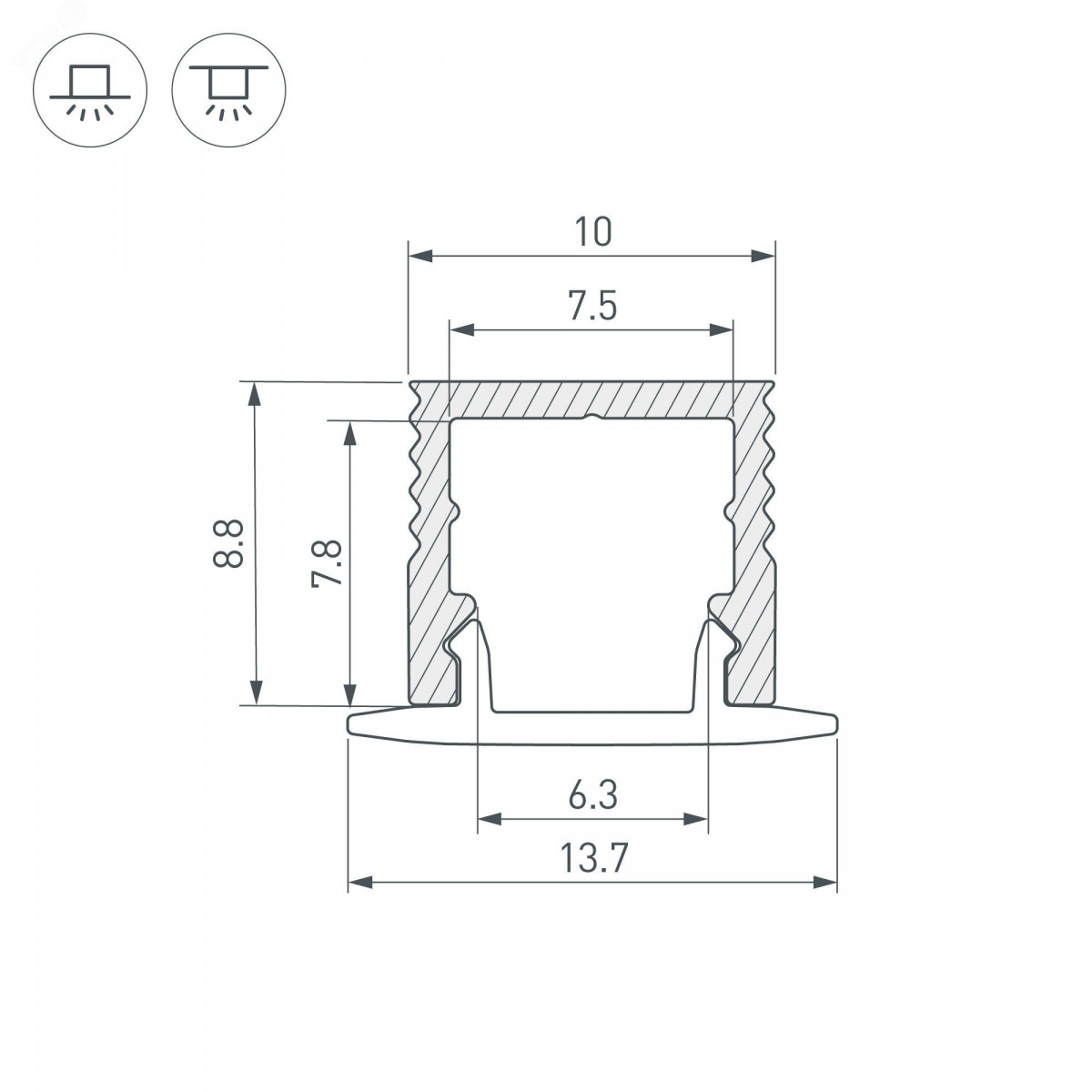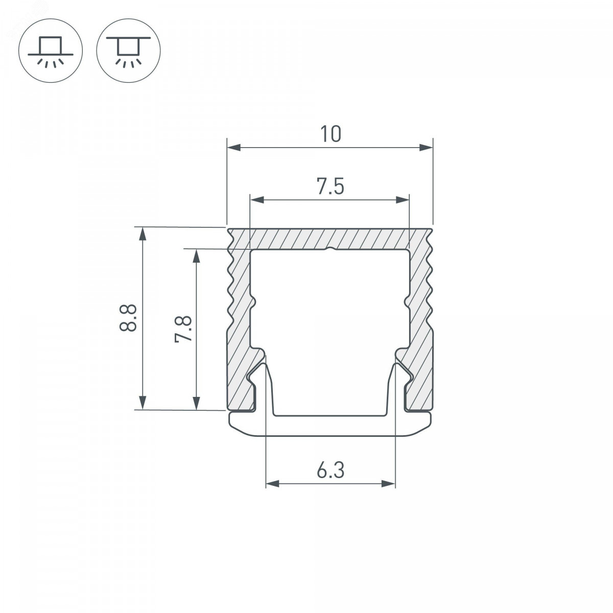 Накладной/встраиваемый микро-профиль из анодированного алюминия для подсветки мебели, пазов, ниш и других элементов интерьера. Габаритные размеры профиля составляют 2000 мм в длину, 10 мм в ширину и 8,8 мм в высоту. Площадка для установки светодиодных лент позволяет использовать ленту шириной до 7,5 мм и мощностью до 14 Вт/м. Это обеспечивает гибкость в выборе светодиодных лент и создает потрясающие световые решения. Экран, заглушки и другие аксессуары не включены в комплект и приобретаются отдельно. Цена указана за 1 метр профиля. Отличное решение для создания современных световых проектов.