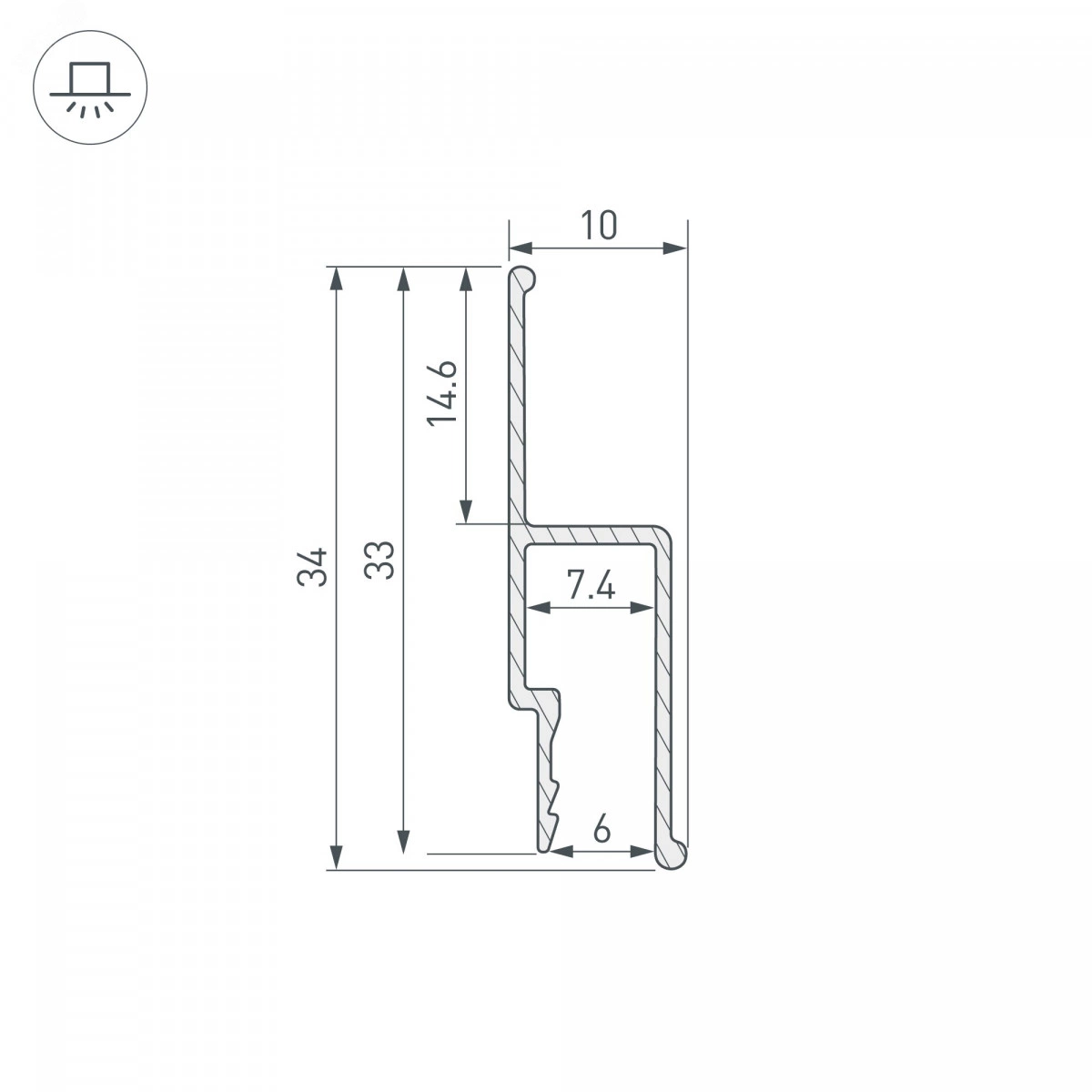 Накладной алюминиевый профиль для монтажа натяжного потолка с использованием гарпунной системы. Габаритные размеры профиля составляют 2500 мм в длину, 10 мм в ширину и 34 мм в высоту. Цена указана за 1 метр профиля.